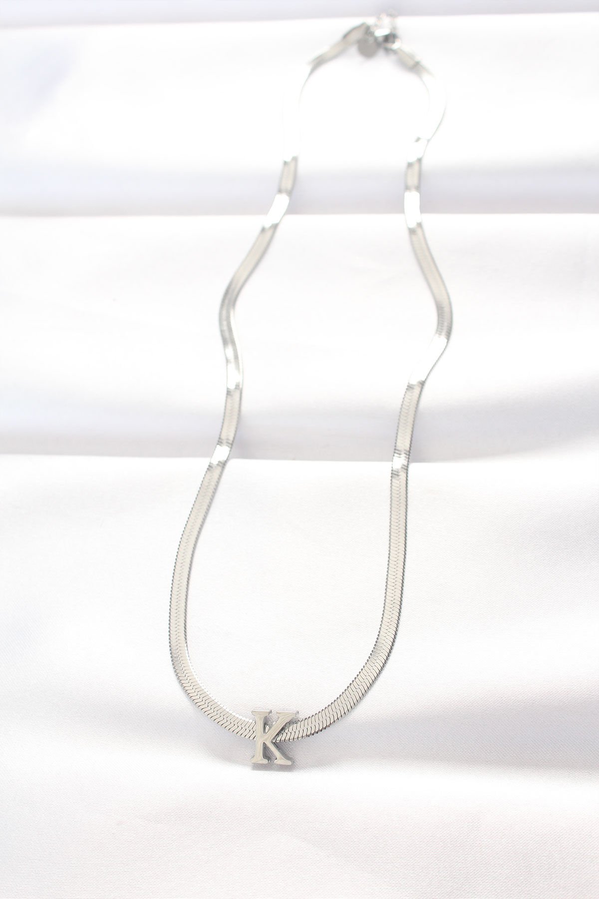 316L Çelik K Harfli Silver Renk İtalyan Zincirli Kolye