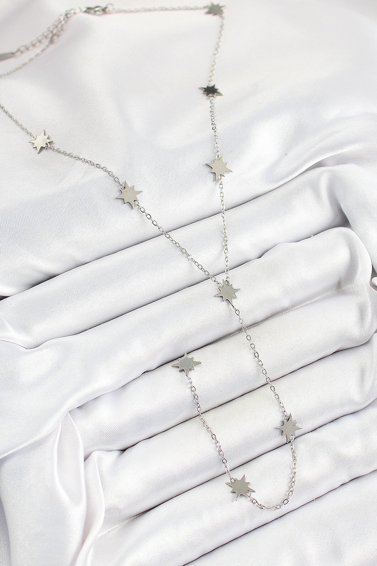 316L Çelik Kutup Yıldızı Figürlü Y Model Gümüş Renk Kadın Kolye e_BKO10332