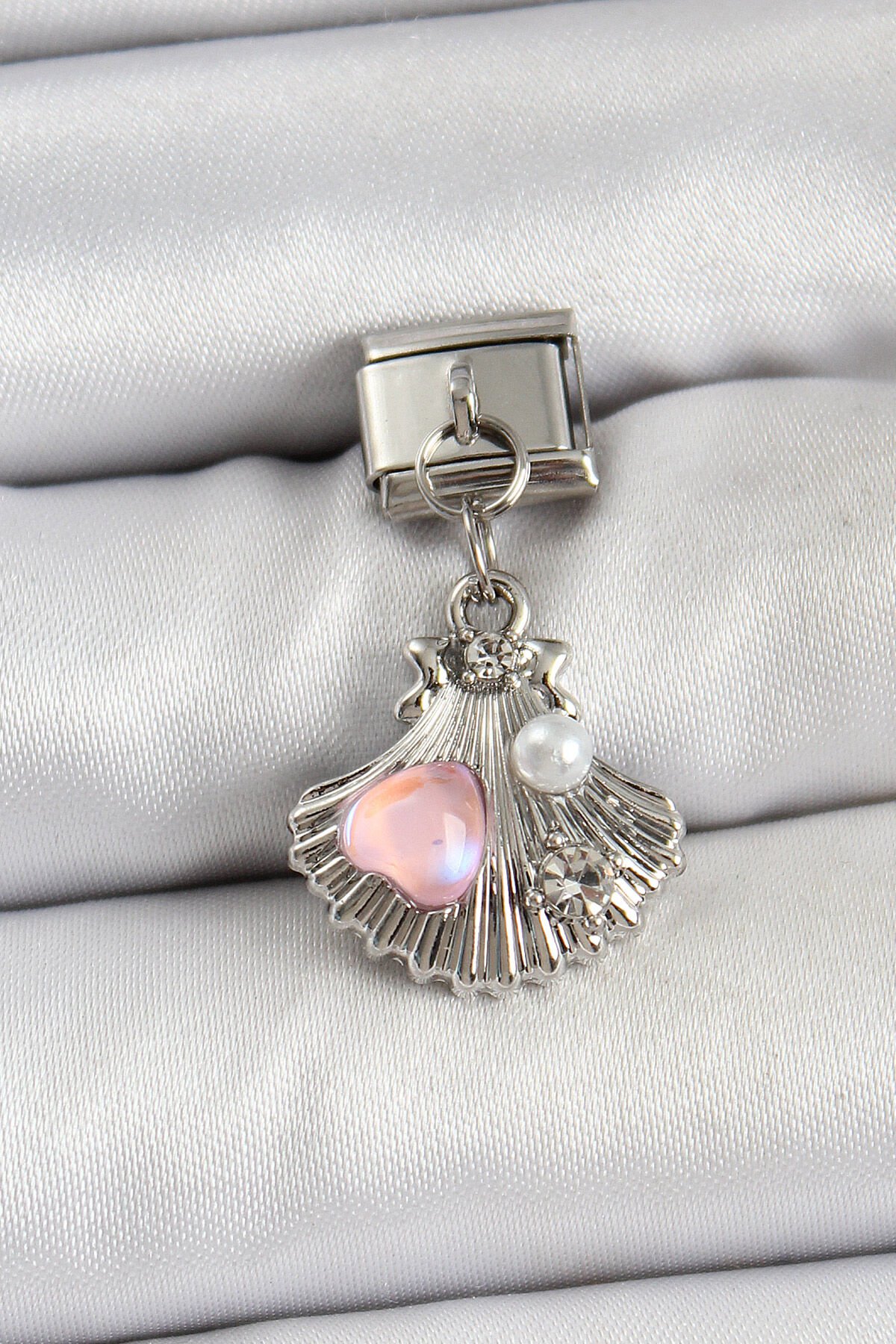 316L Çelik Sallantılı İnci Detaylı İstiridye Model Gümüş Renk Nomination Charm