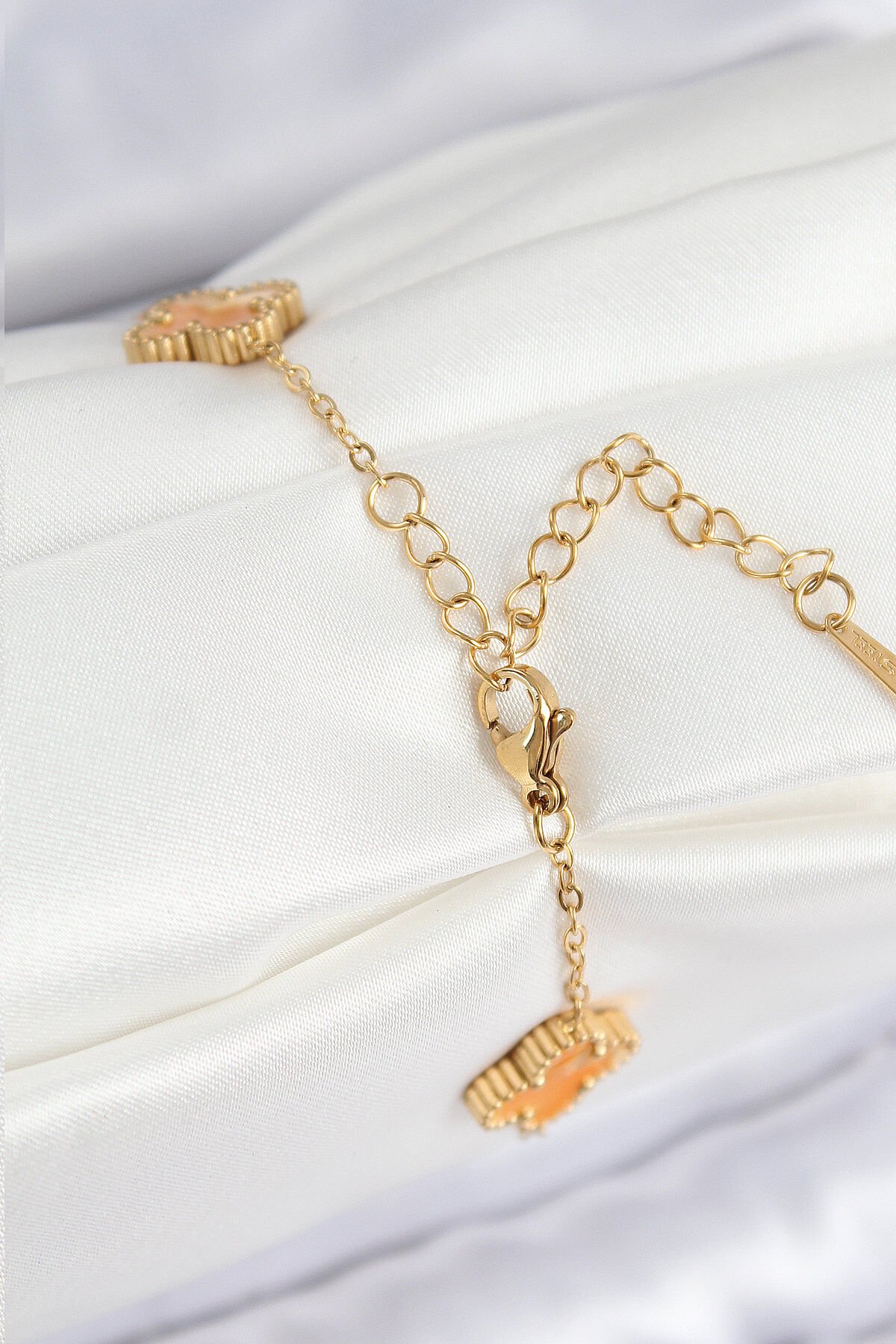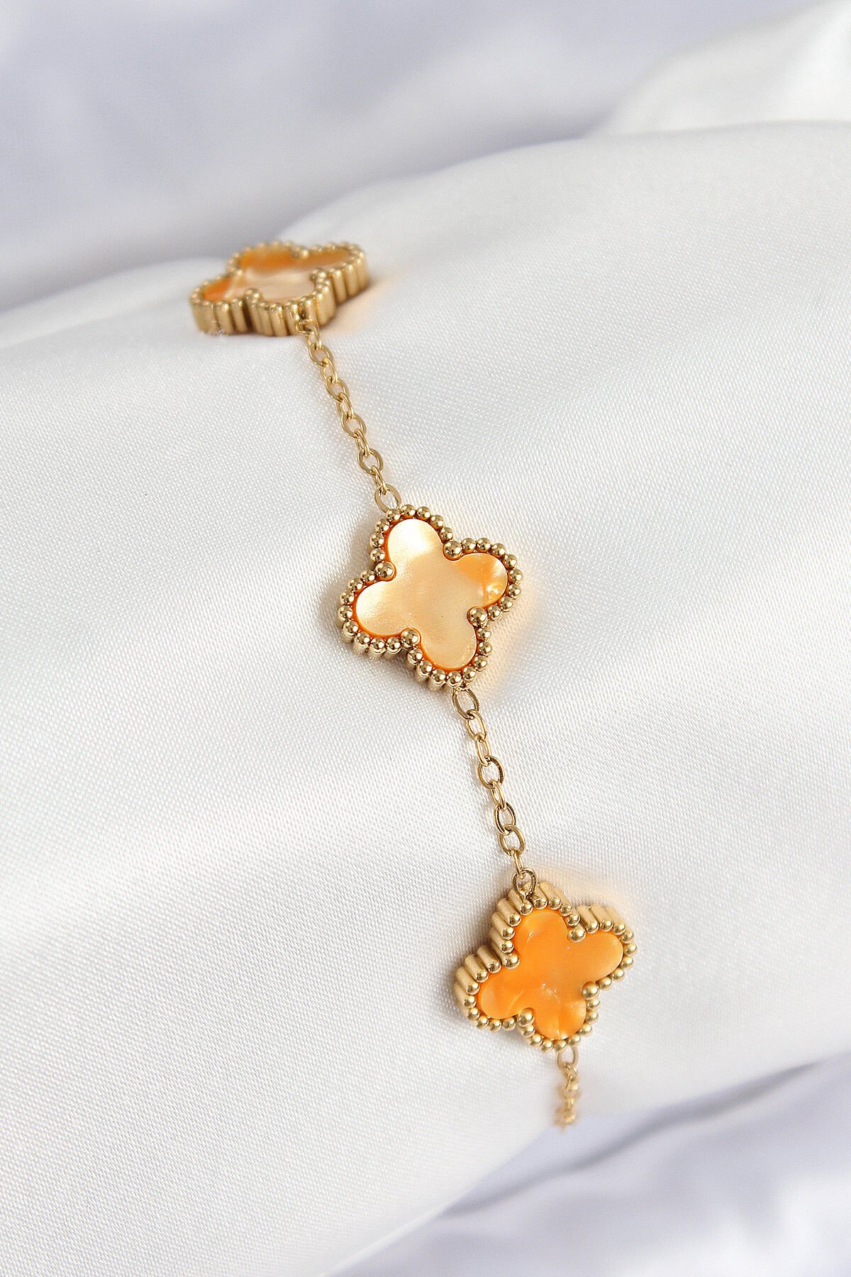 316L Çelik Sedefli Turuncu Gold Renk Yonca Kadın Bileklik