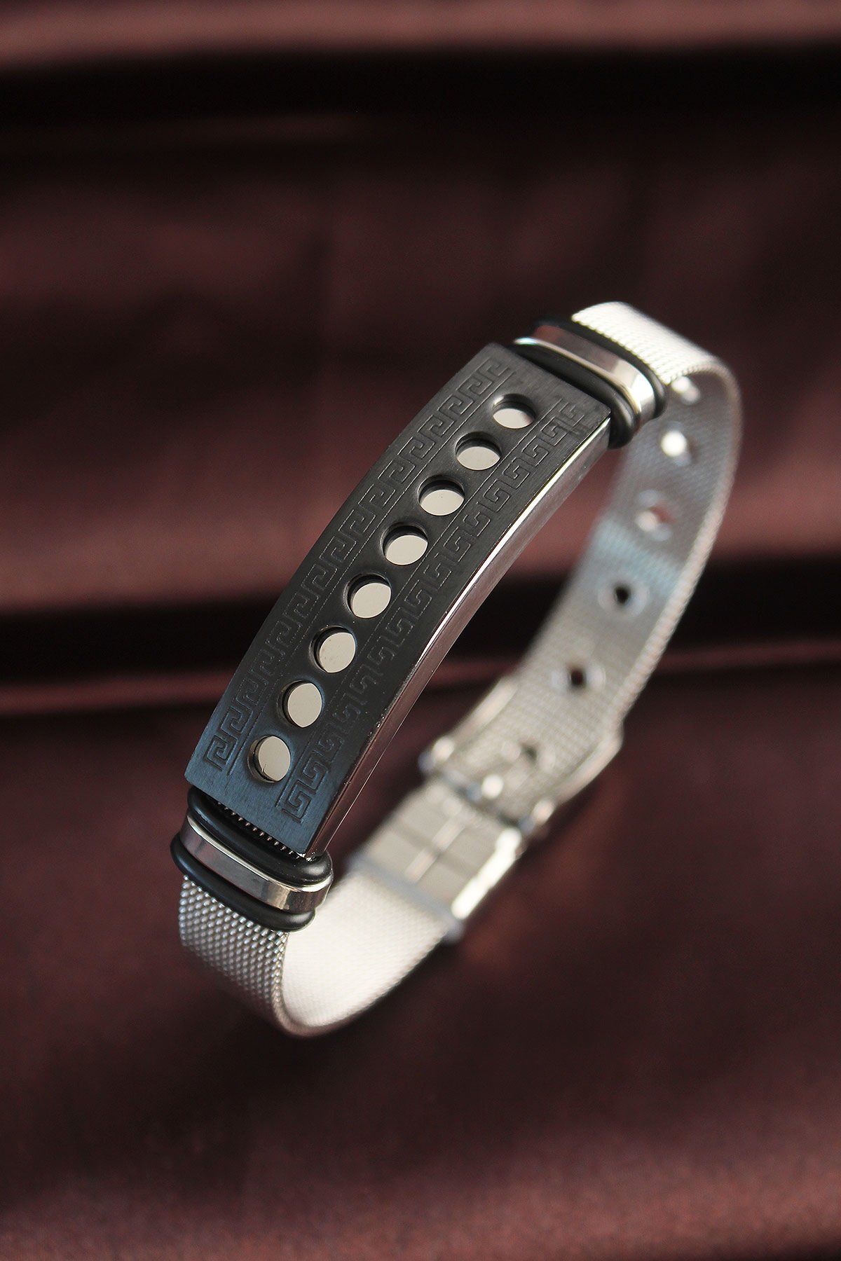 316L Çelik Siyah Desenli Oval Figür Ayarlanabilir Hasır Kordonlu Bileklik