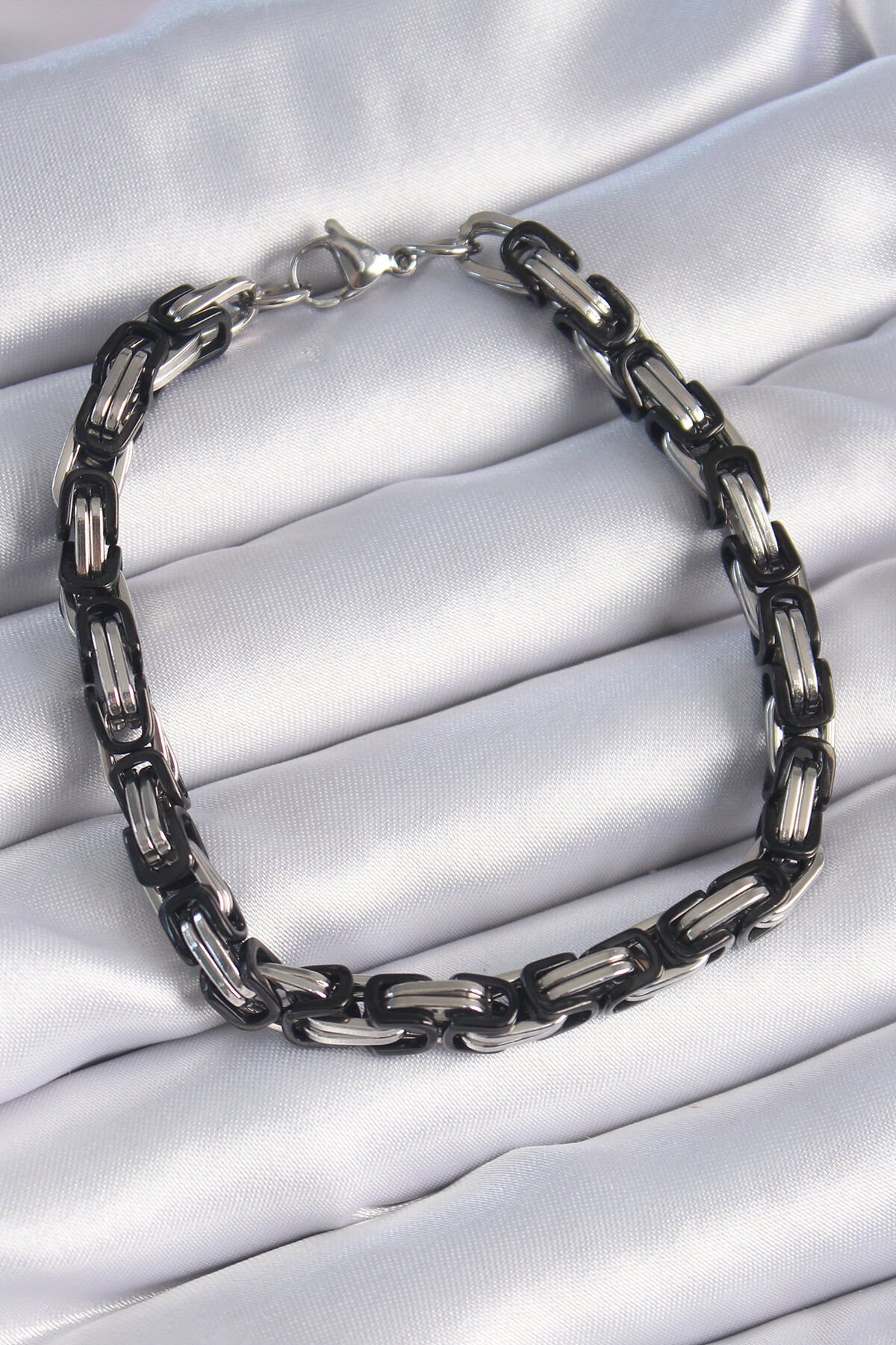 316L Çelik Siyah Gümüş Renk Kral Zincir Model Erkek Bileklik