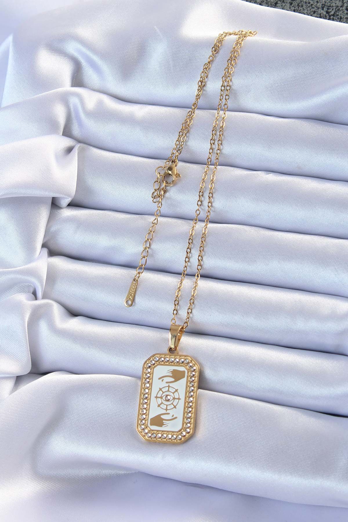 316L Çelik Zincir Altın Renk Mineli Zirkon Taşlı Göz Figür Tarot Kolye