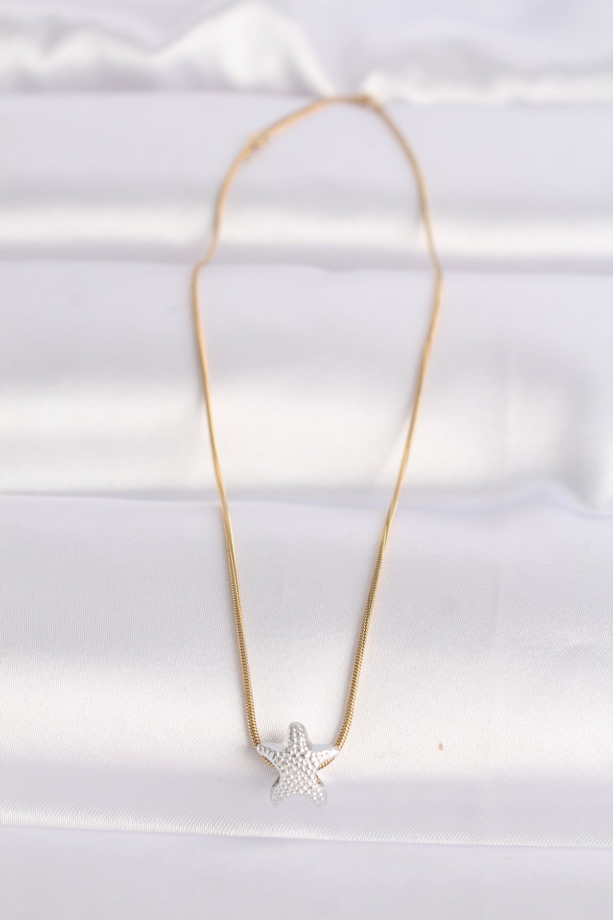 316L Çelik Zincir Altın Renk Zincirli Gümüş Renk Deniz Yıldızı Tasarımlı Kolye