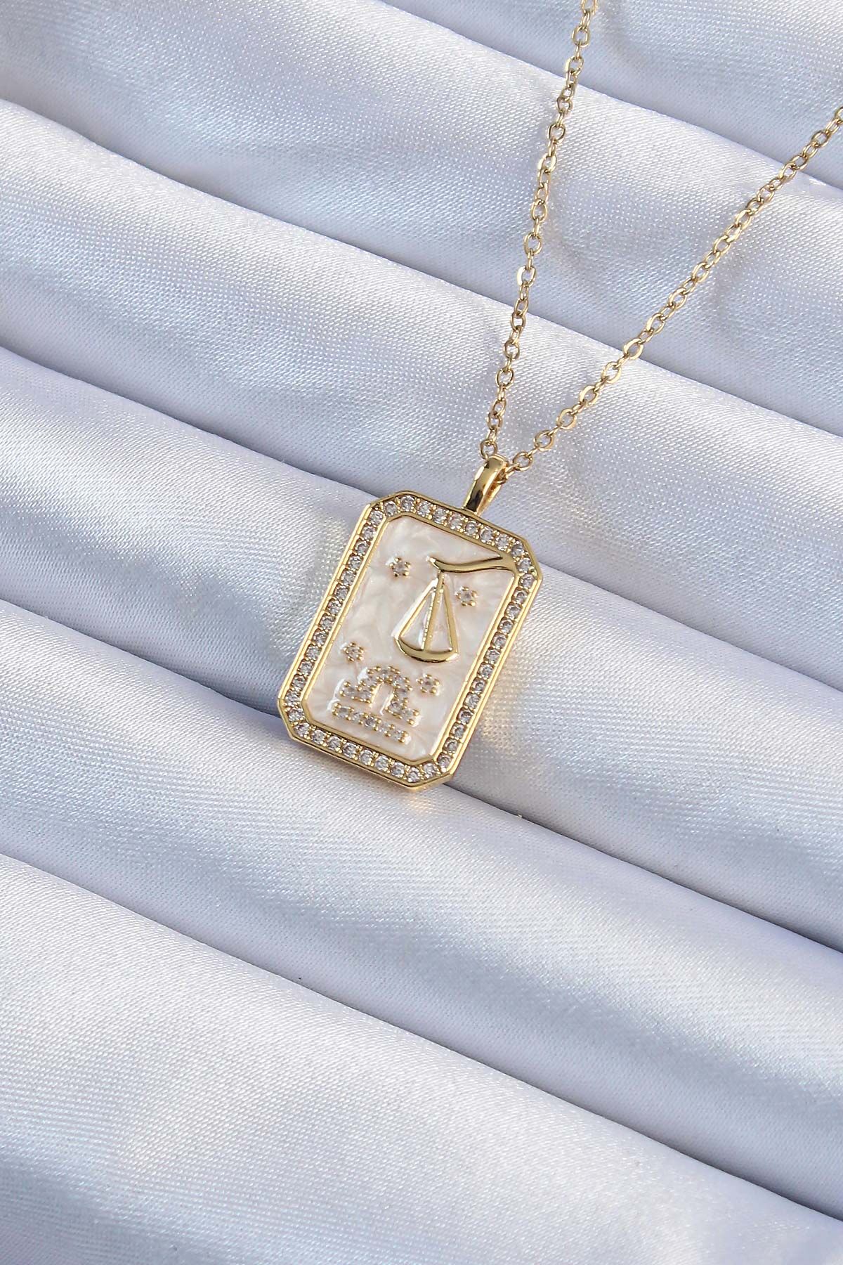 316L Çelik Zincir Altın Renk Zirkon Taşlı Çerçeveli Tarot Kolye