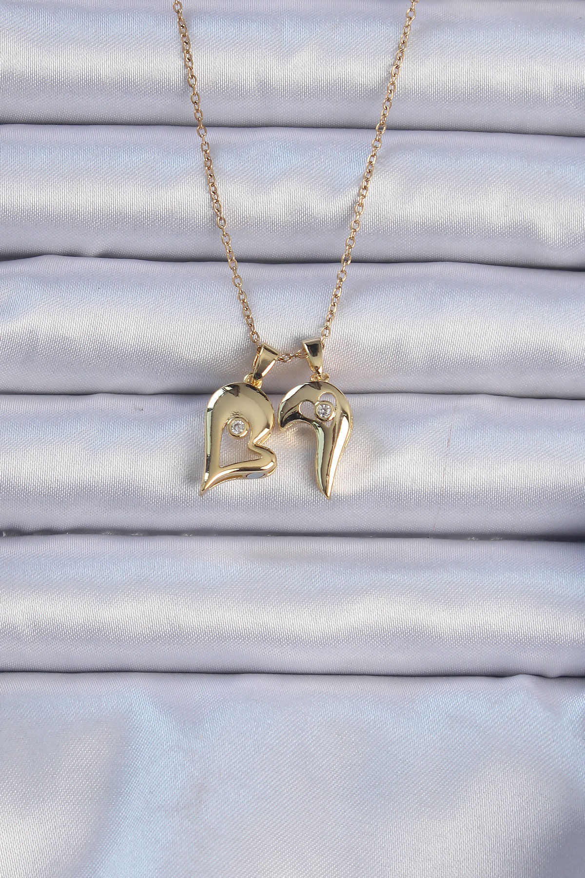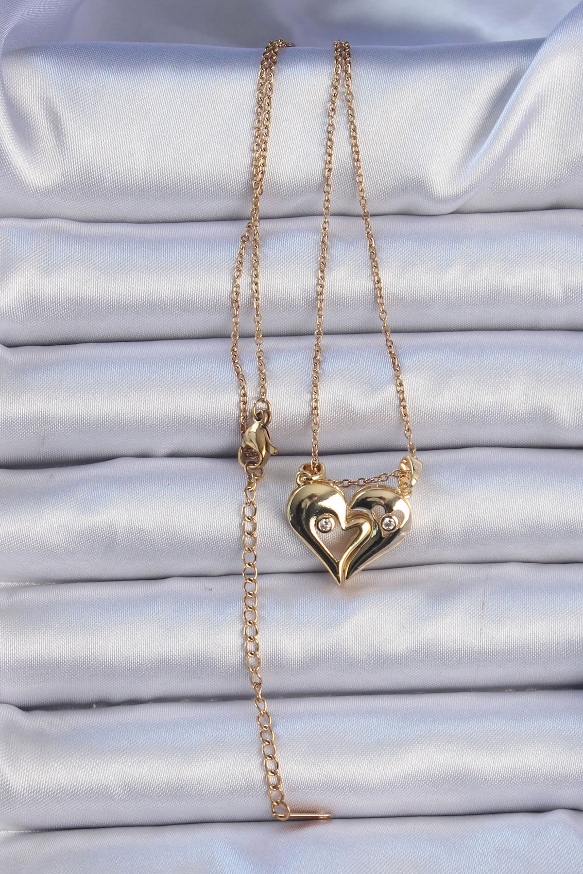 316L Çelik Zincir Altın Renk Zirkon Taşlı Mıknatıslı Kalp Kolye