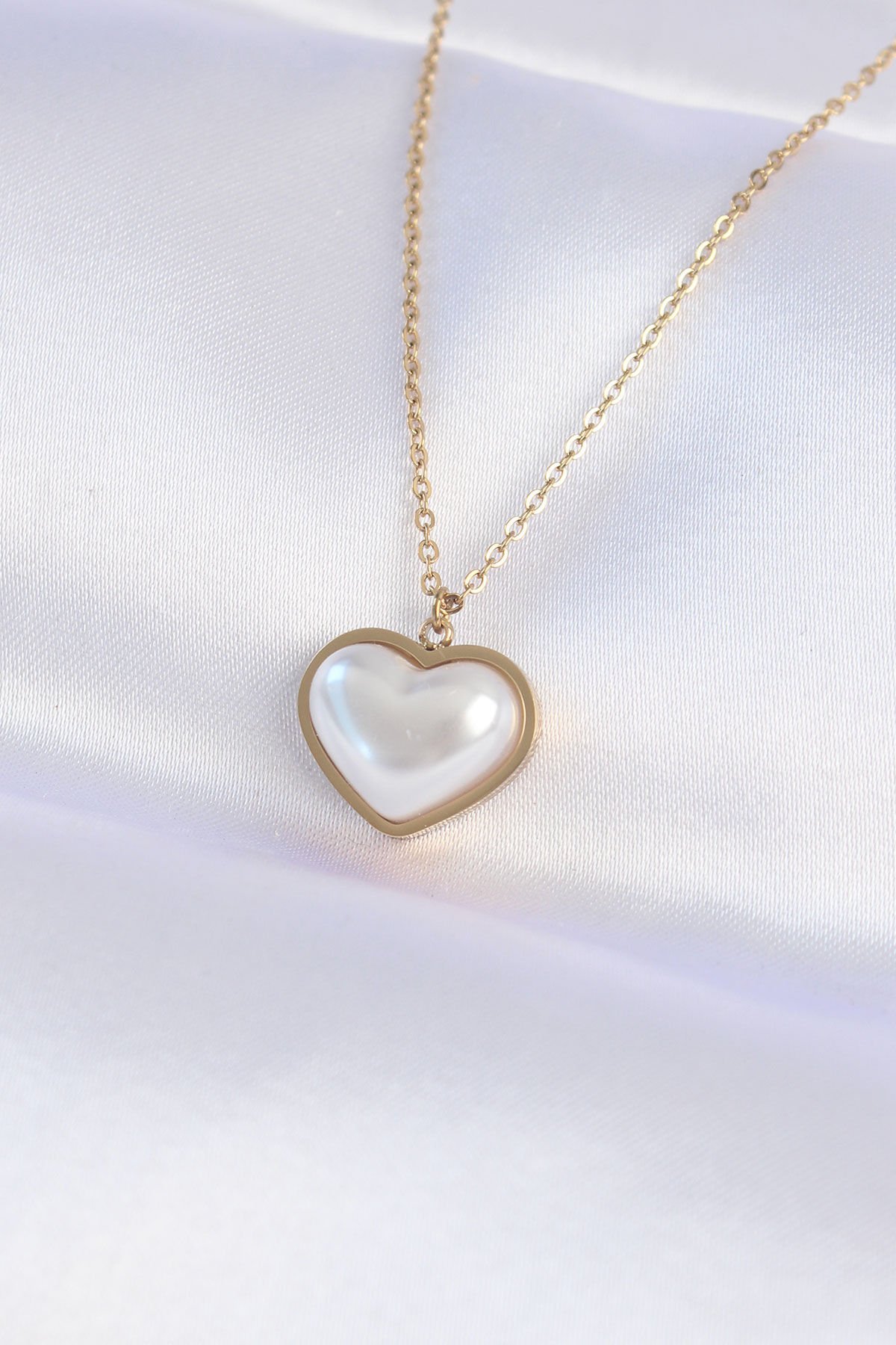 316L Çelik Zincir Gold Renk Beyaz Taşlı Bubble Kalp Kolye