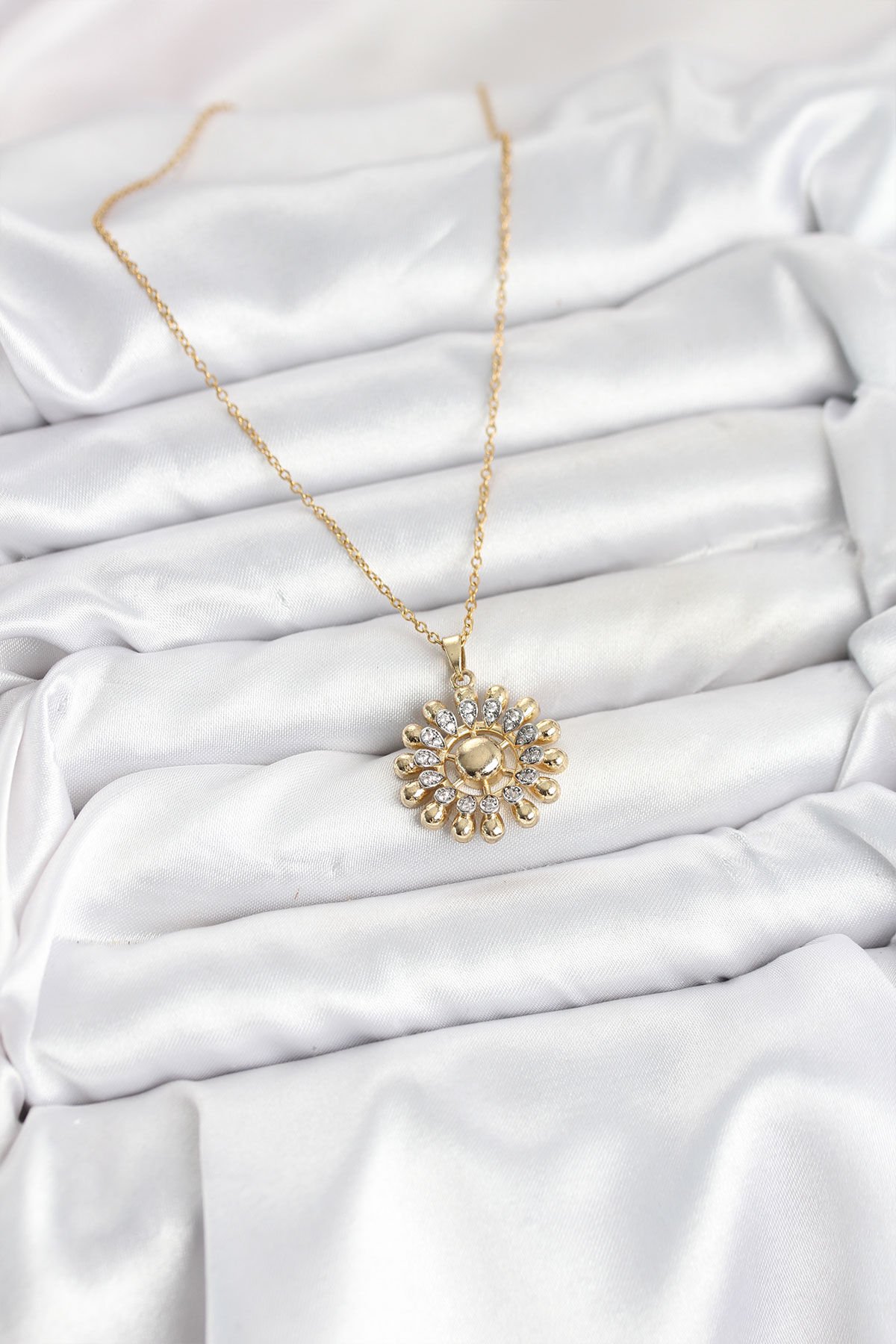 316L Çelik Zincir Gold Renk Güneş Model Kadın Kolye e_BKO10605
