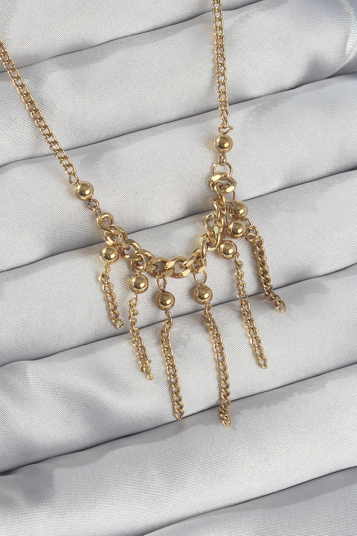 316L Çelik Zincir Gold Renk Topçuk Detay Sallantılı Zincir Kolye e_BKO8911