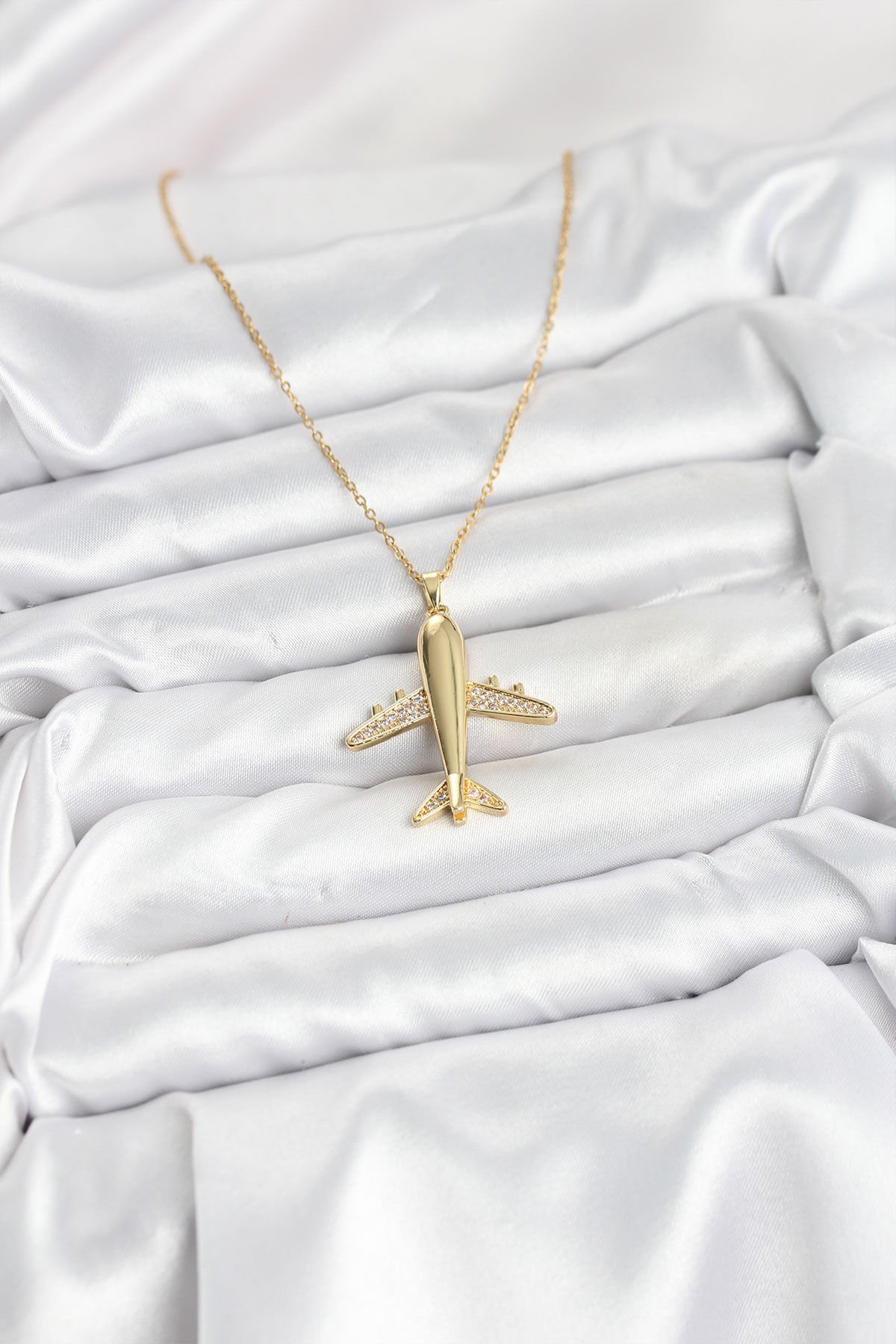 316L Çelik Zincir Gold Renk Uçak Model Kadın Kolye