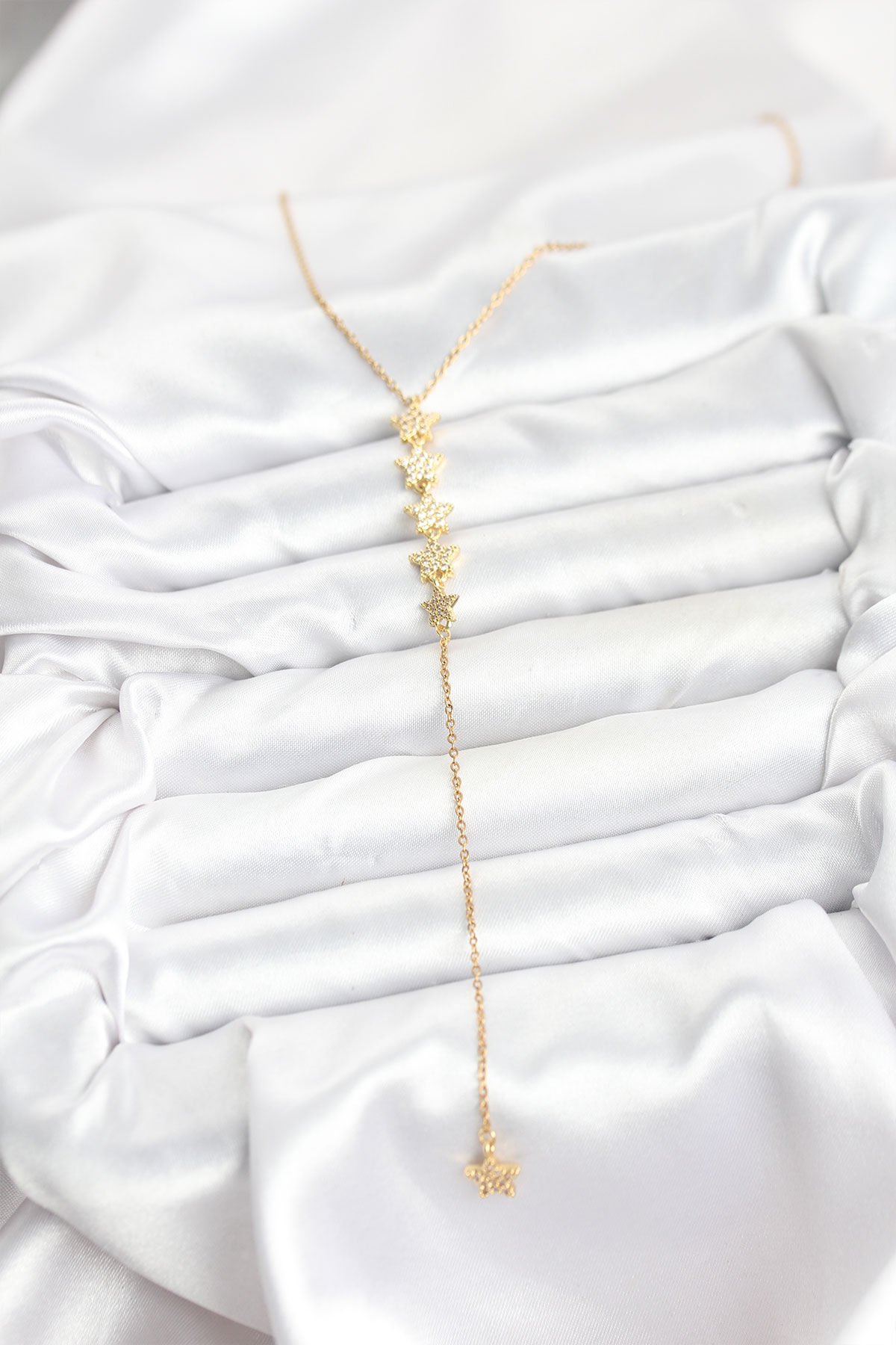 316L Çelik Zincir Gold Renk Yıldız Model Y Kolye e_BKO10660