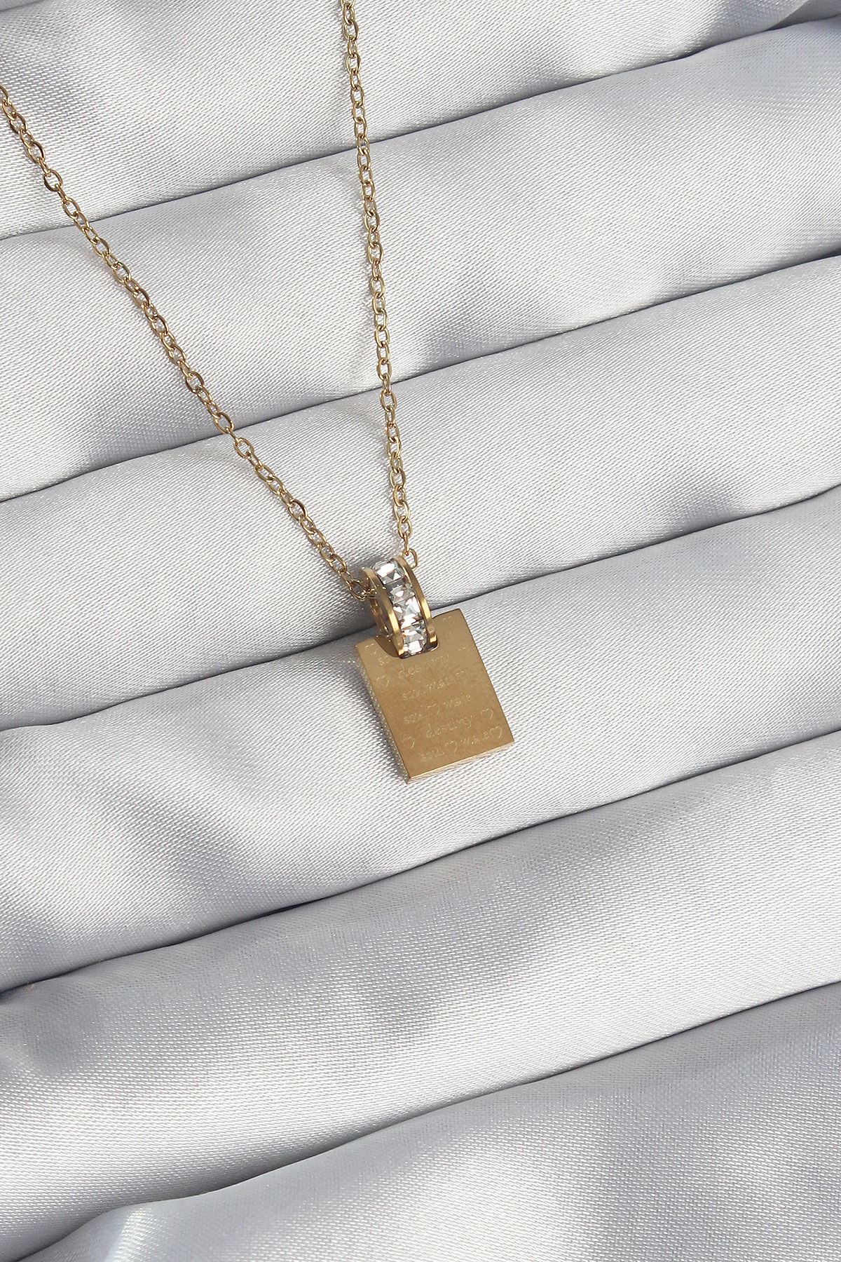 316L Çelik Zincir Gold Renk Zirkon Taşlı Aşk Mektubu Kolye e_BKO8907