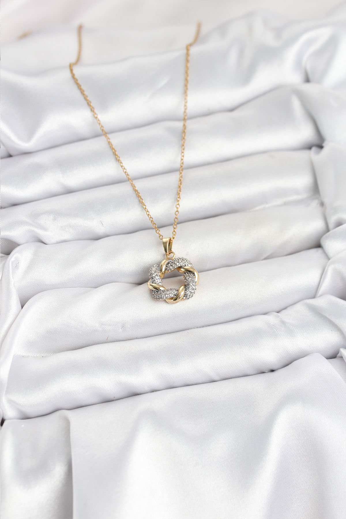 316L Çelik Zincir Gold Renk Zirkon Taşlı Sarmal Model Kadın Kolye e_BKO10612