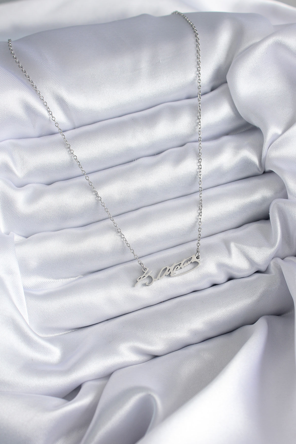 316L Çelik Zincir Gümüş Renk Atatürk İmza Figür Kadın Kolye e_BKO7841