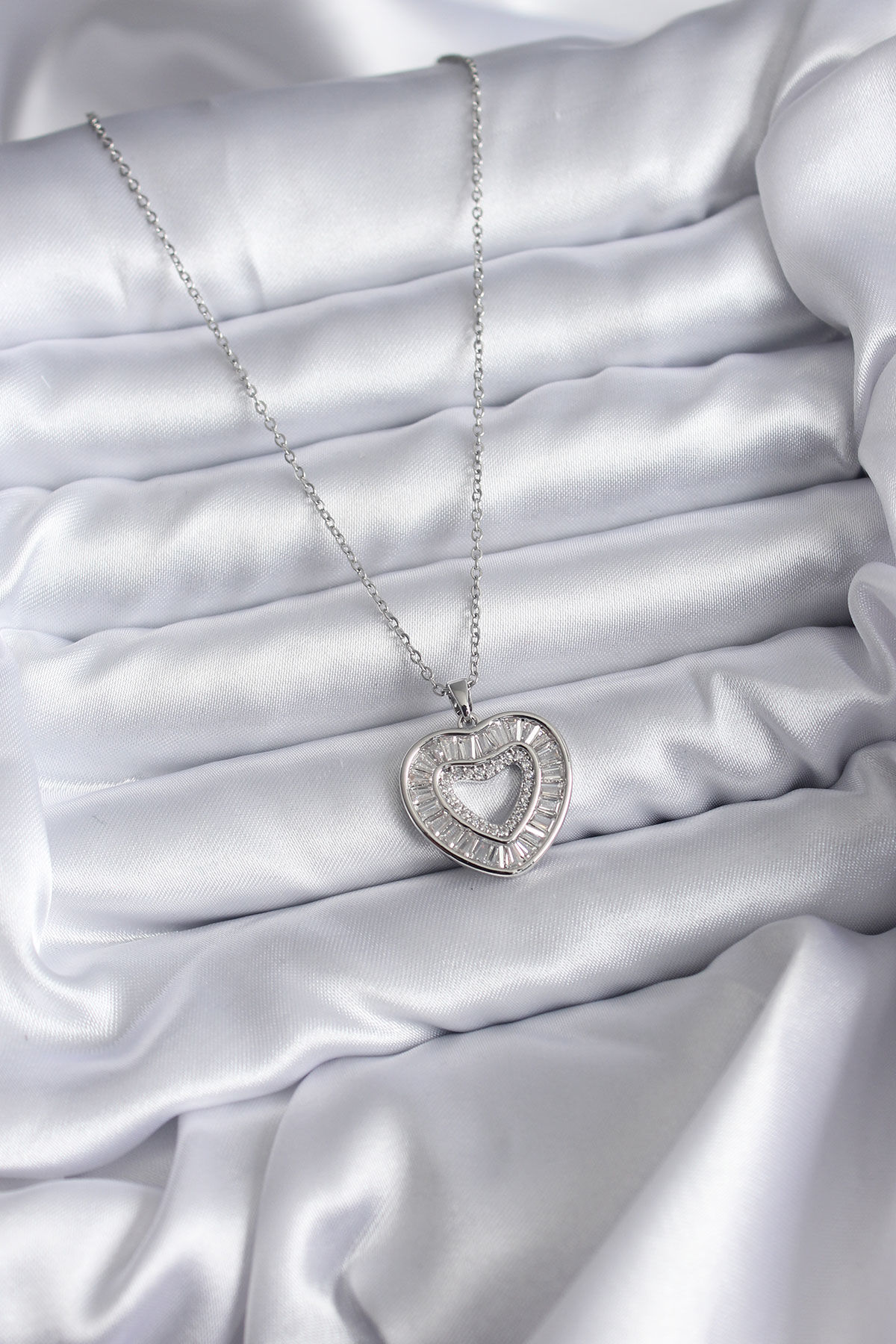 316L Çelik Zincir Gümüş Renk Baget Zirkon Taşlı Kadın Kolye e_BKO7824