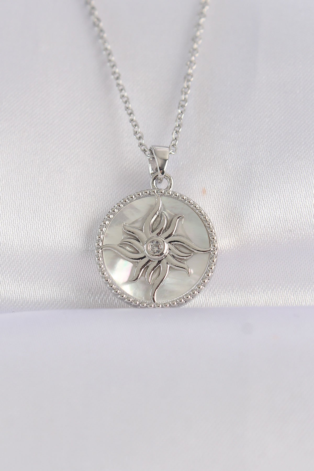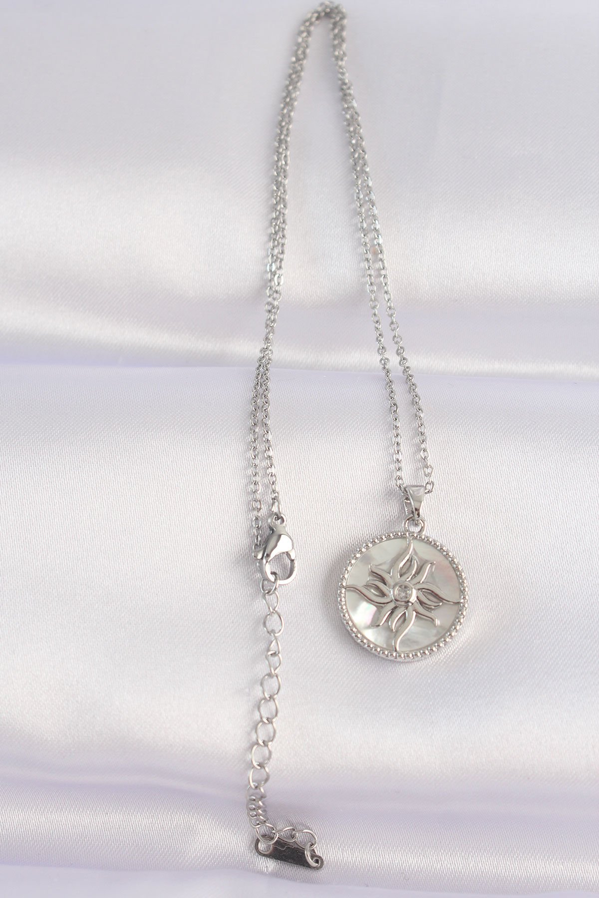 316L Çelik Zincir Gümüş Renk Oval Tasarımlı Güneş Kolye e_BKO8663