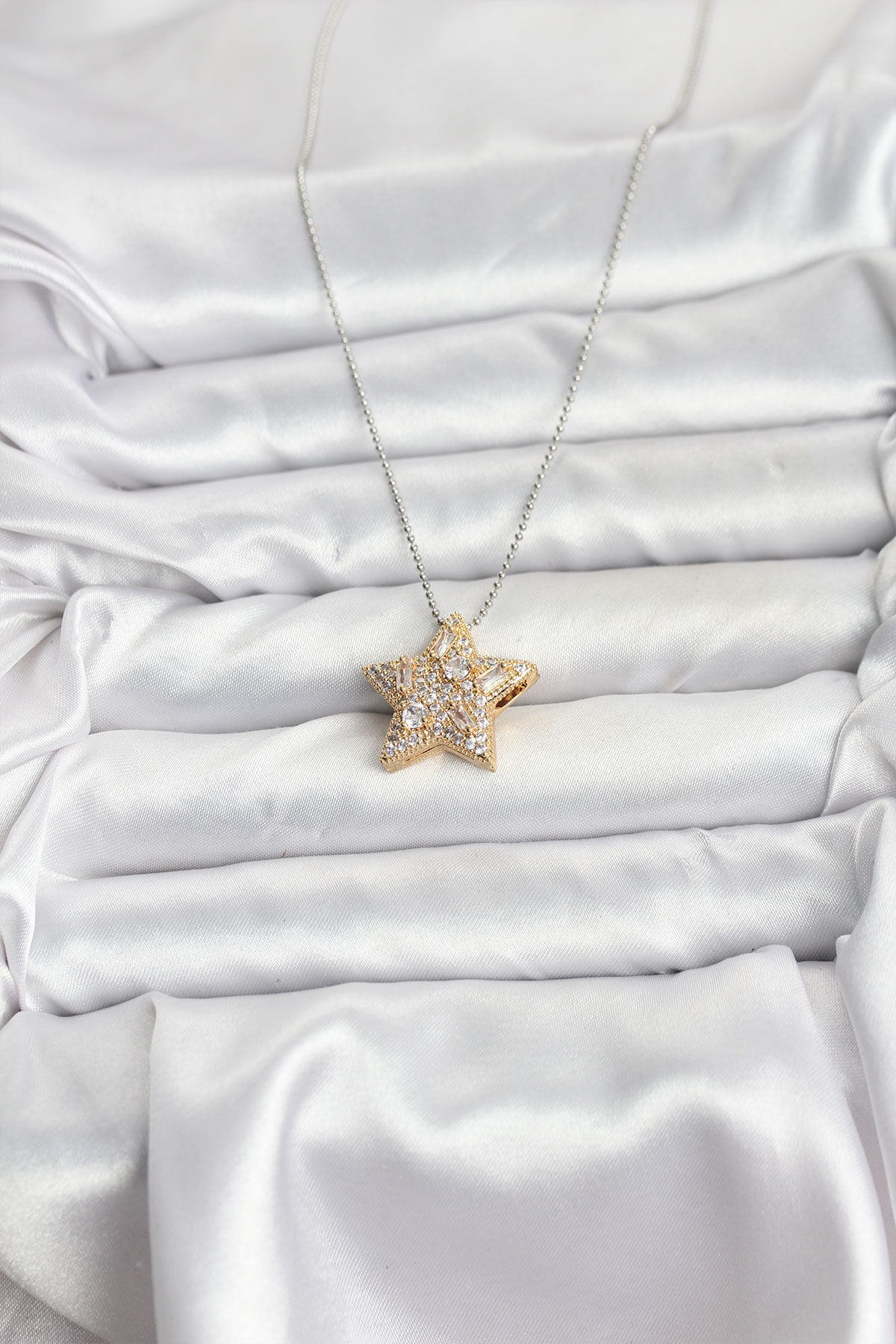 316L Çelik Zincir Gümüş Renk Zincirli Gold Yıldız Model Kadın Kolye