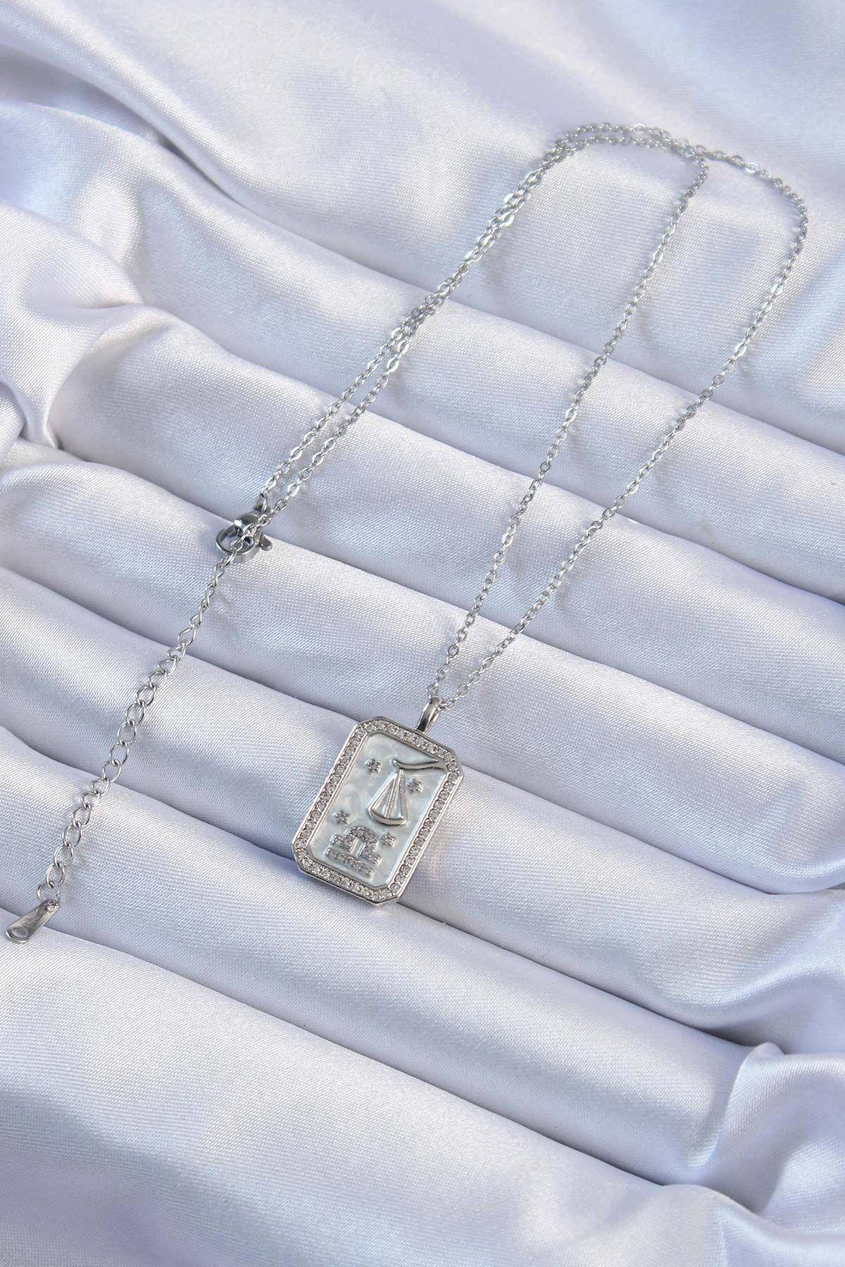 316L Çelik Zincir Gümüş Renk Zirkon Taşlı Çerçeveli Tarot Kolye e_BKO9234