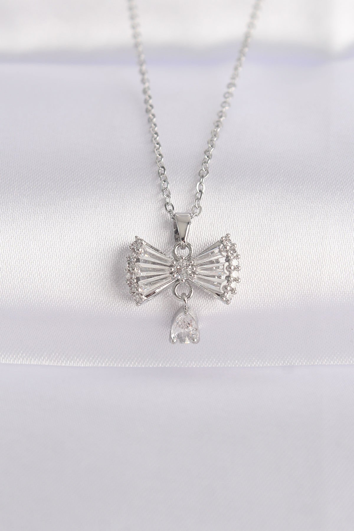 316L Çelik Zincir Gümüş Renk Zirkon Taşlı Kalp Detay Fiyonk Kolye e_BKO8602