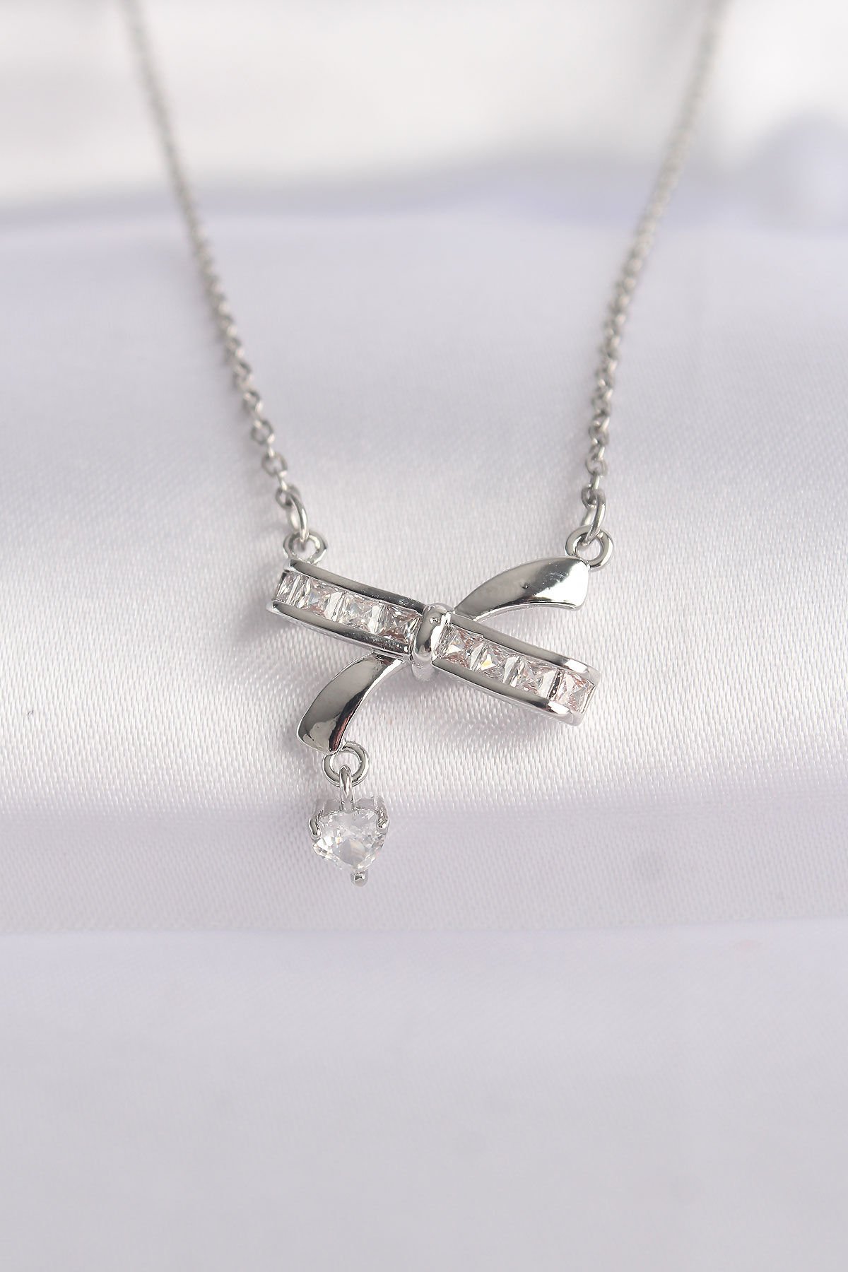 316L Çelik Zincir Gümüş Renk Zirkon Taşlı Kalp Detay Fiyonk Kolye e_BKO8621