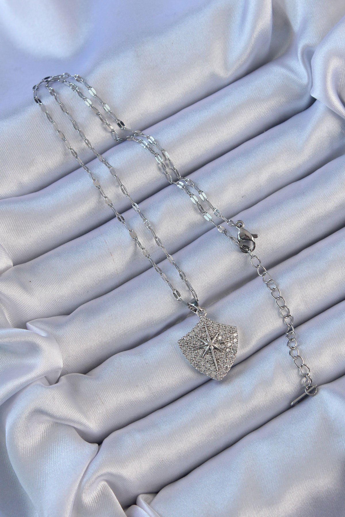 316L Çelik Zincir Gümüş Renk Zirkon Taşlı Kutup Yıldızı Kolye