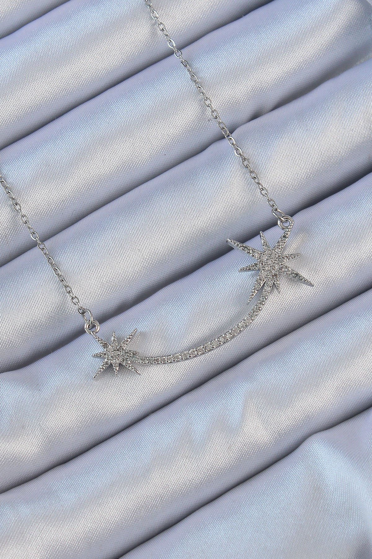 316L Çelik Zincir Gümüş Renk Zirkon Taşlı Kutup Yıldızı Kolye e_BKO9140