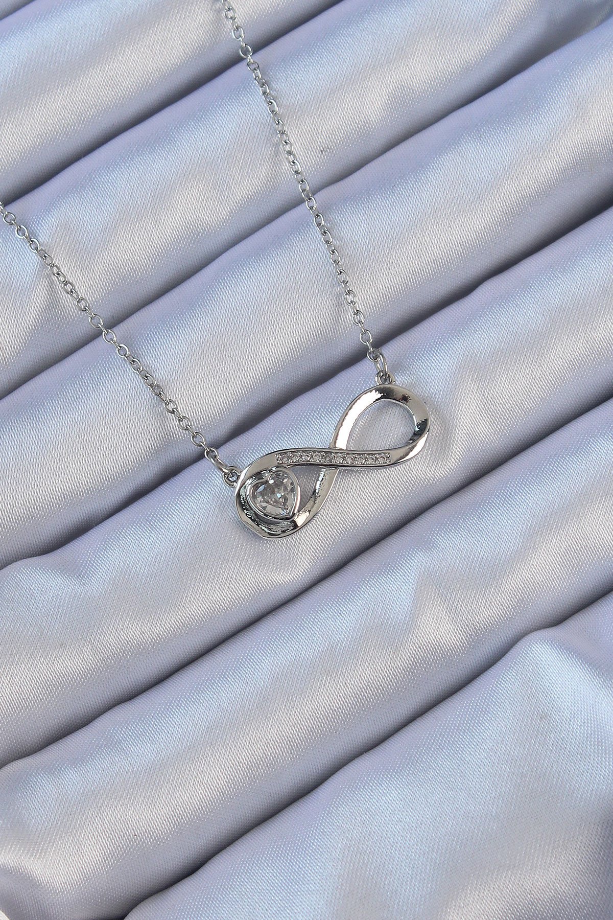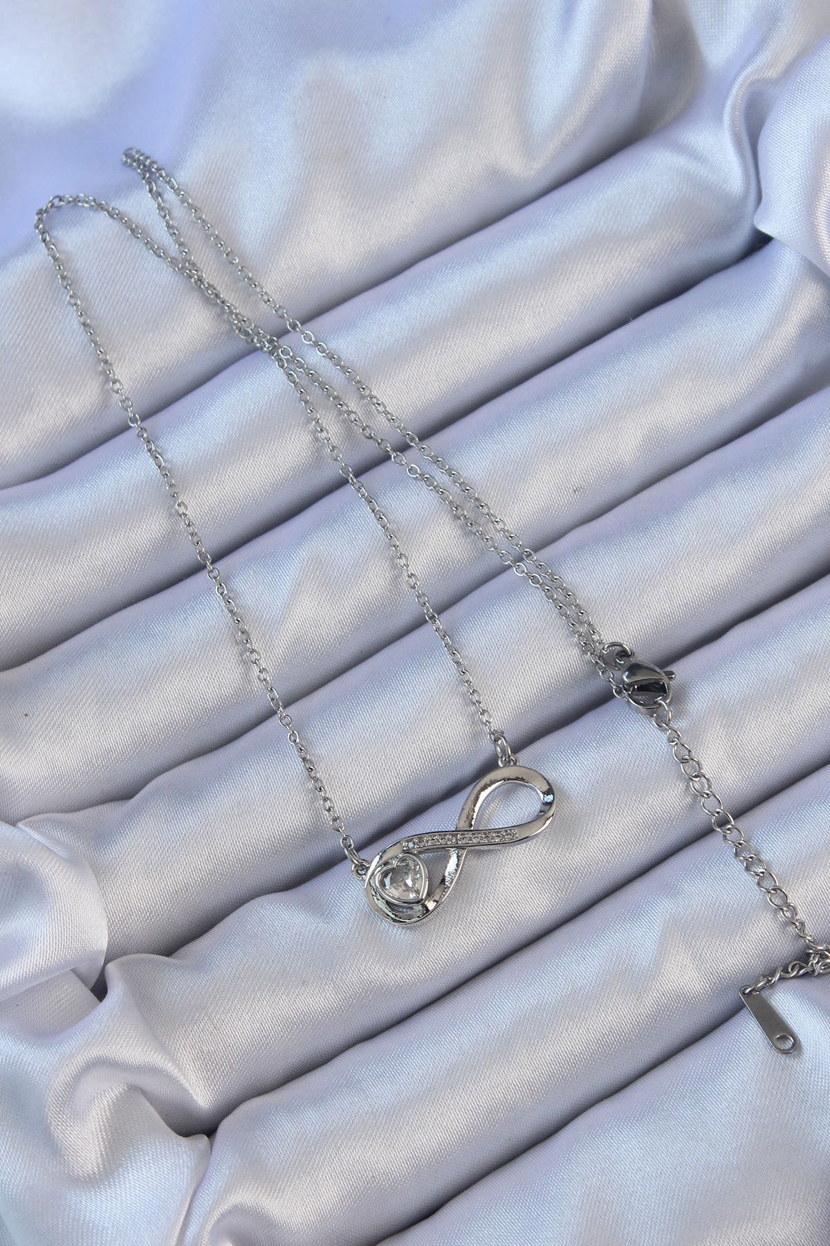 316L Çelik Zincir Gümüş Renk Zirkon Taşlı Minimal Kalp Figür Sonsuzluk Kolye