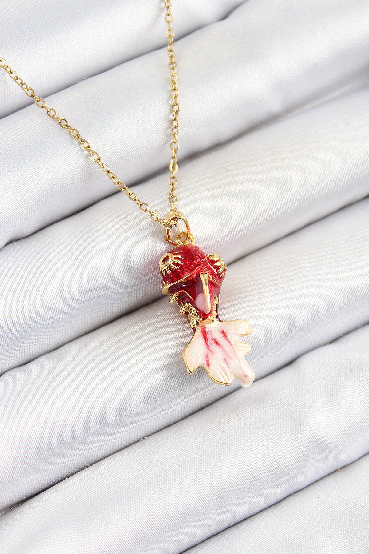 316L Çelik Zincir Kırmızı Balık Model Gold Renk Kadın Kolye e_BKO10325