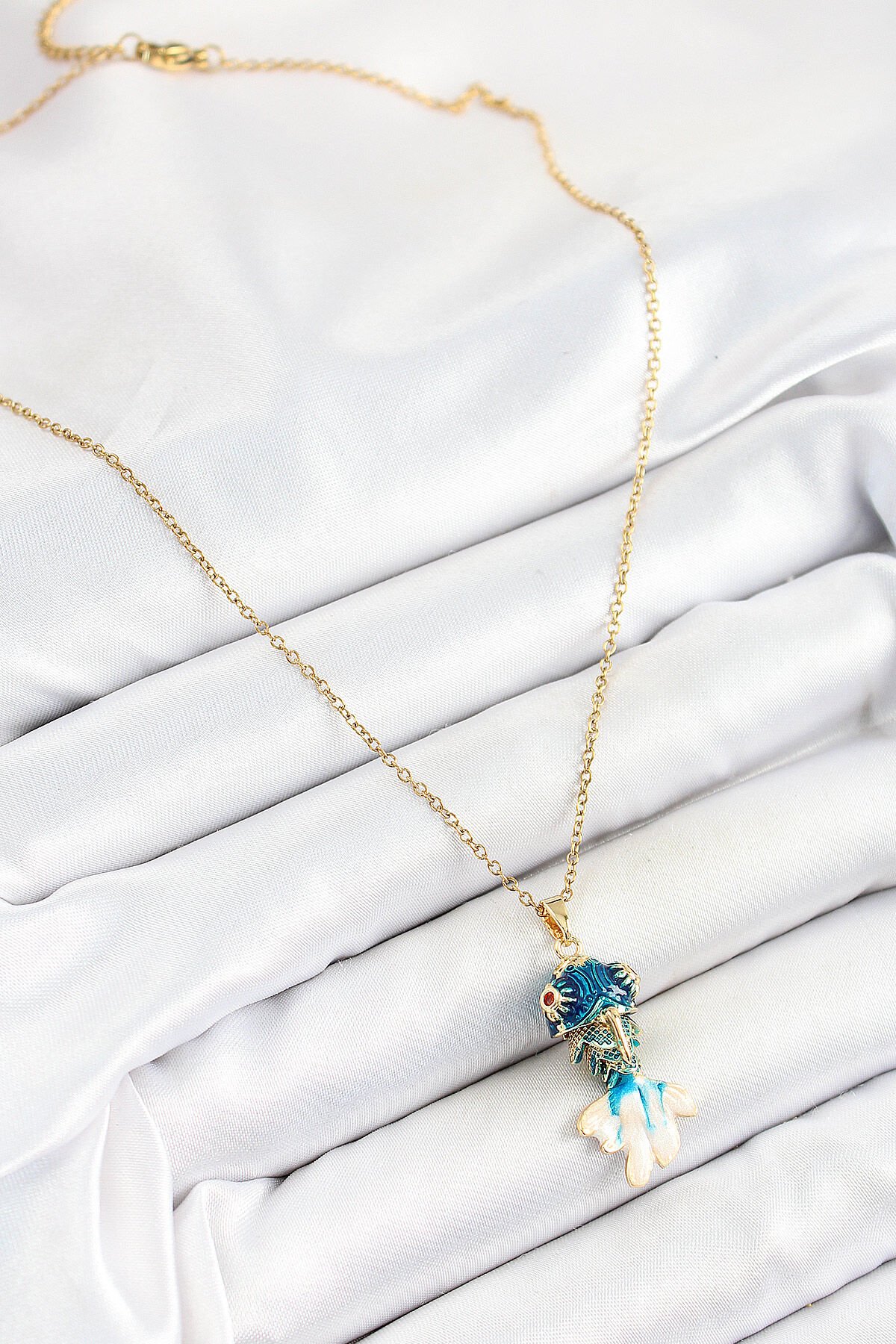 316L Çelik Zincir Mavi Balık Model Gold Renk Kadın Kolye e_BKO10324