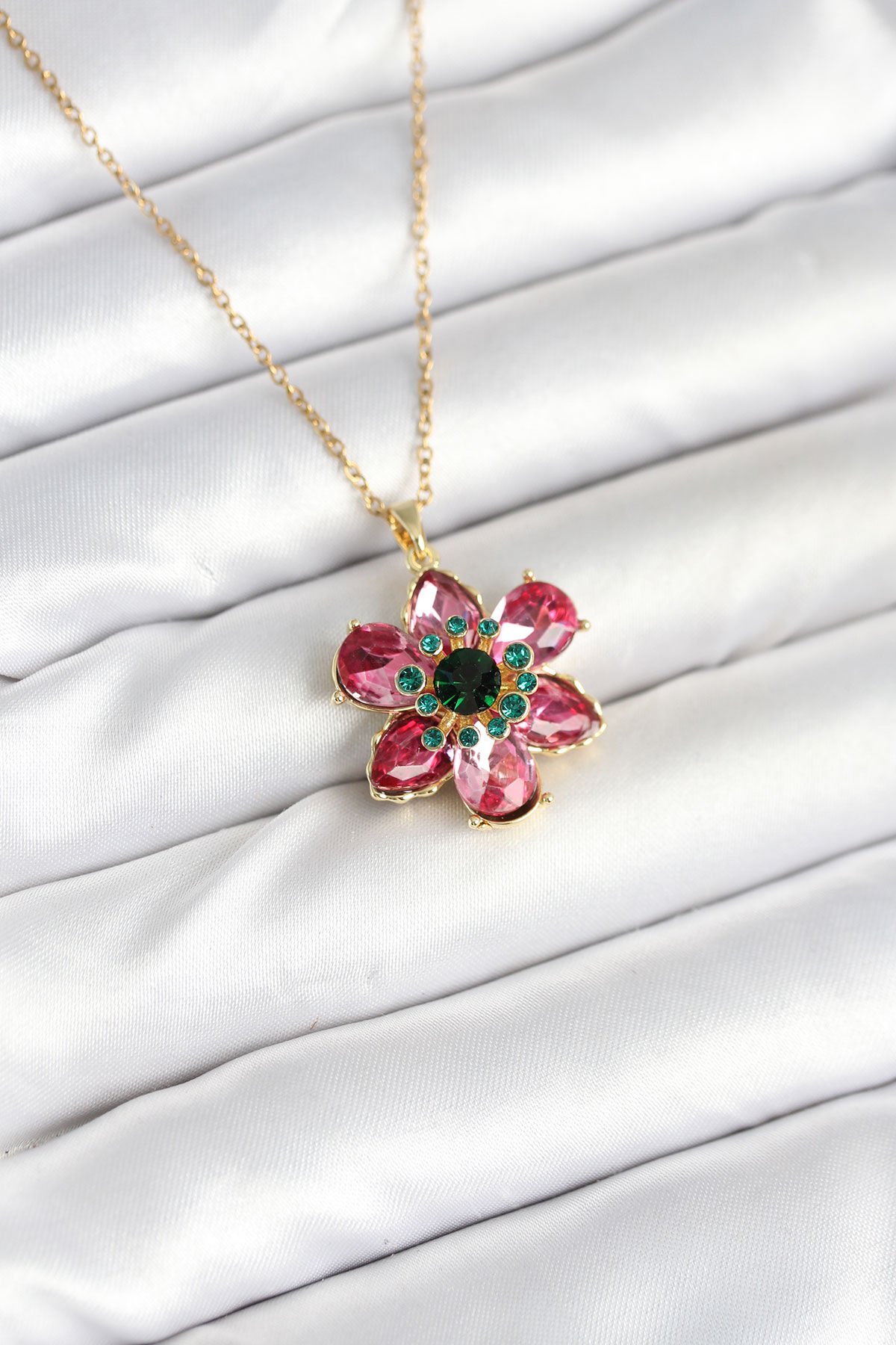 316L Çelik Zincirli Pembe Çiçek Model Kadın Kolye e_BKO10597