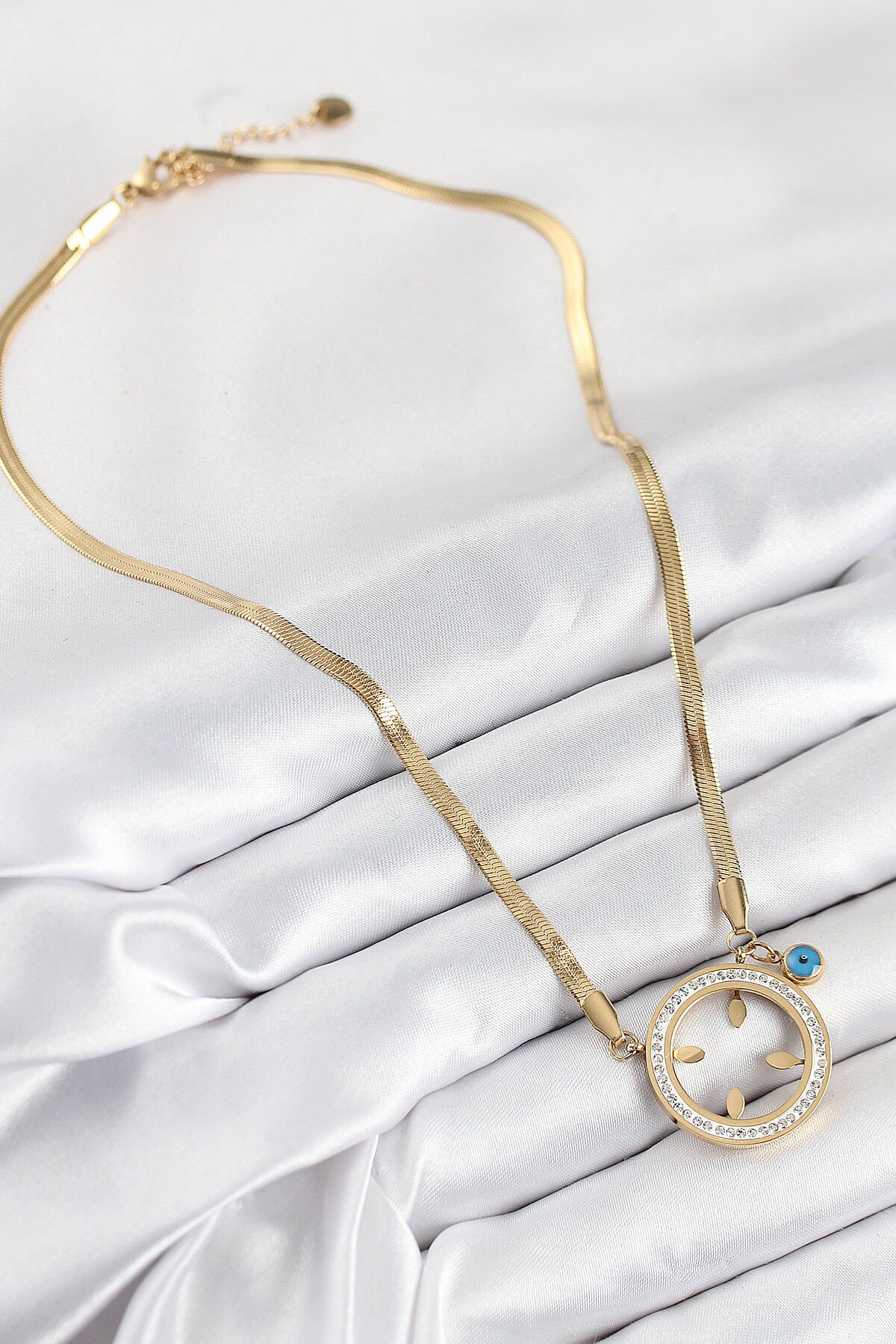 316L Çelik Zirkon Taşlı Çeyrek Takılabilir Gold Renk Kadın Kolye