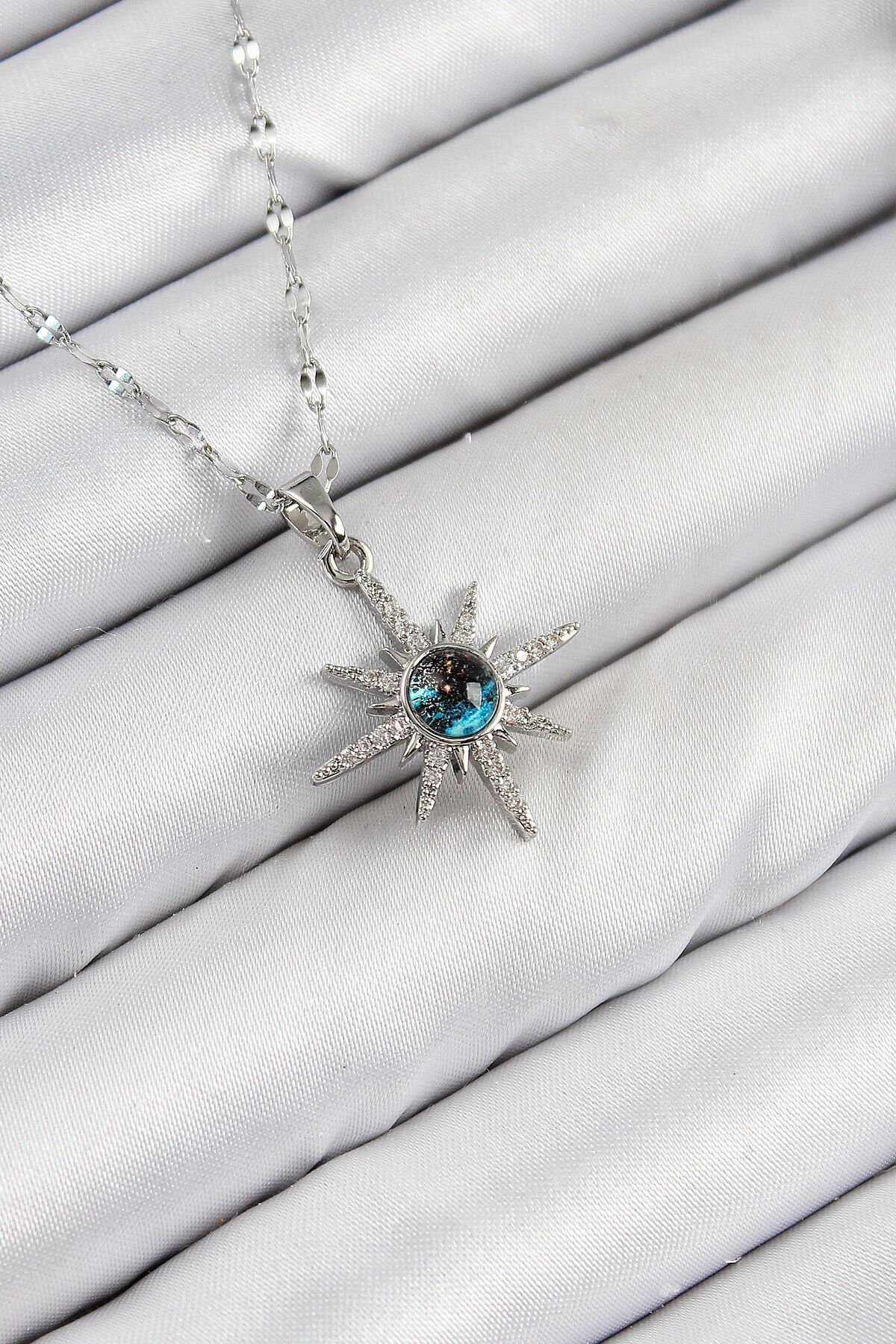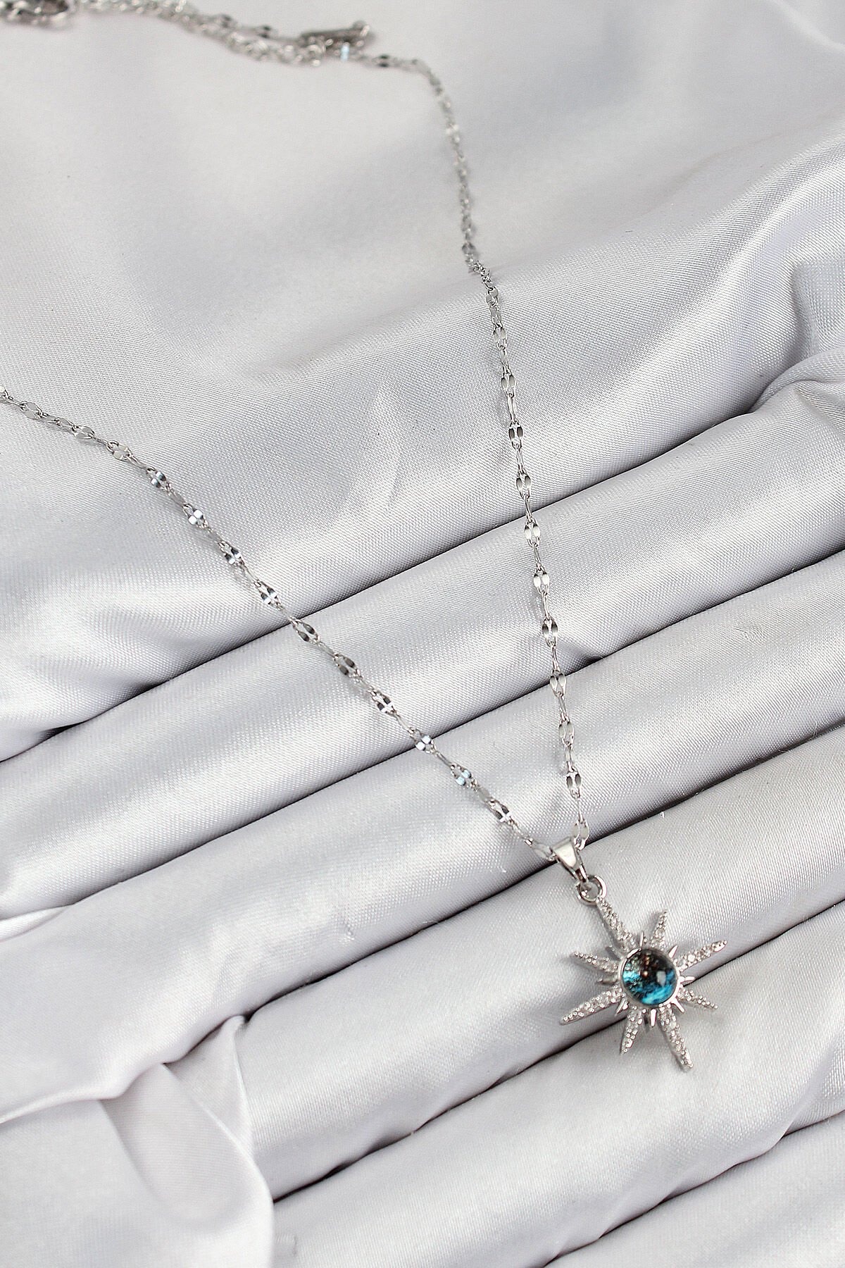 316L Çelik Zirkon Taşlı Kutup Yıldızı Model Gümüş Renk Kadın Kolye