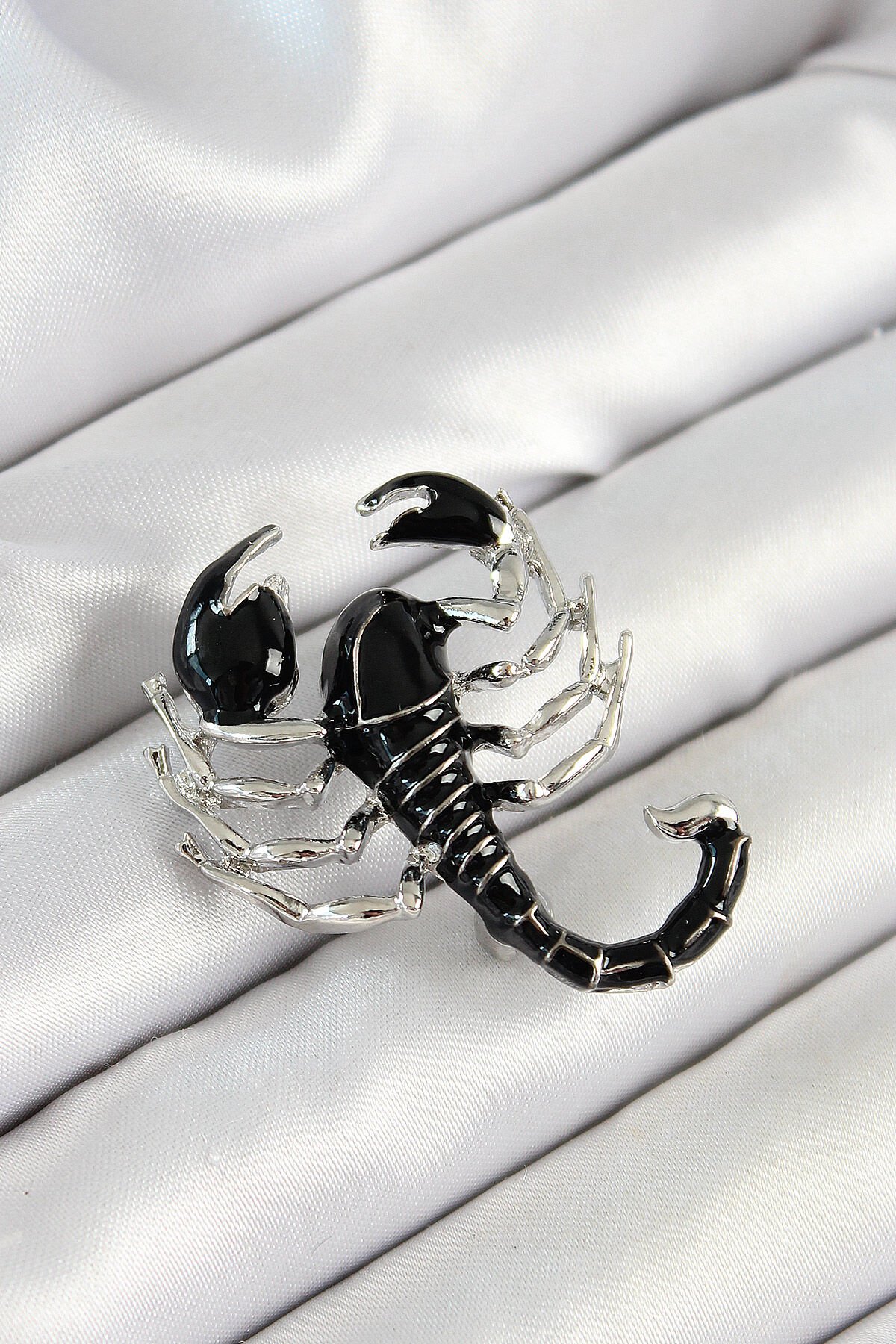 3D Siyah Akrep Figürlü Gümüş Renk Kadın Broş