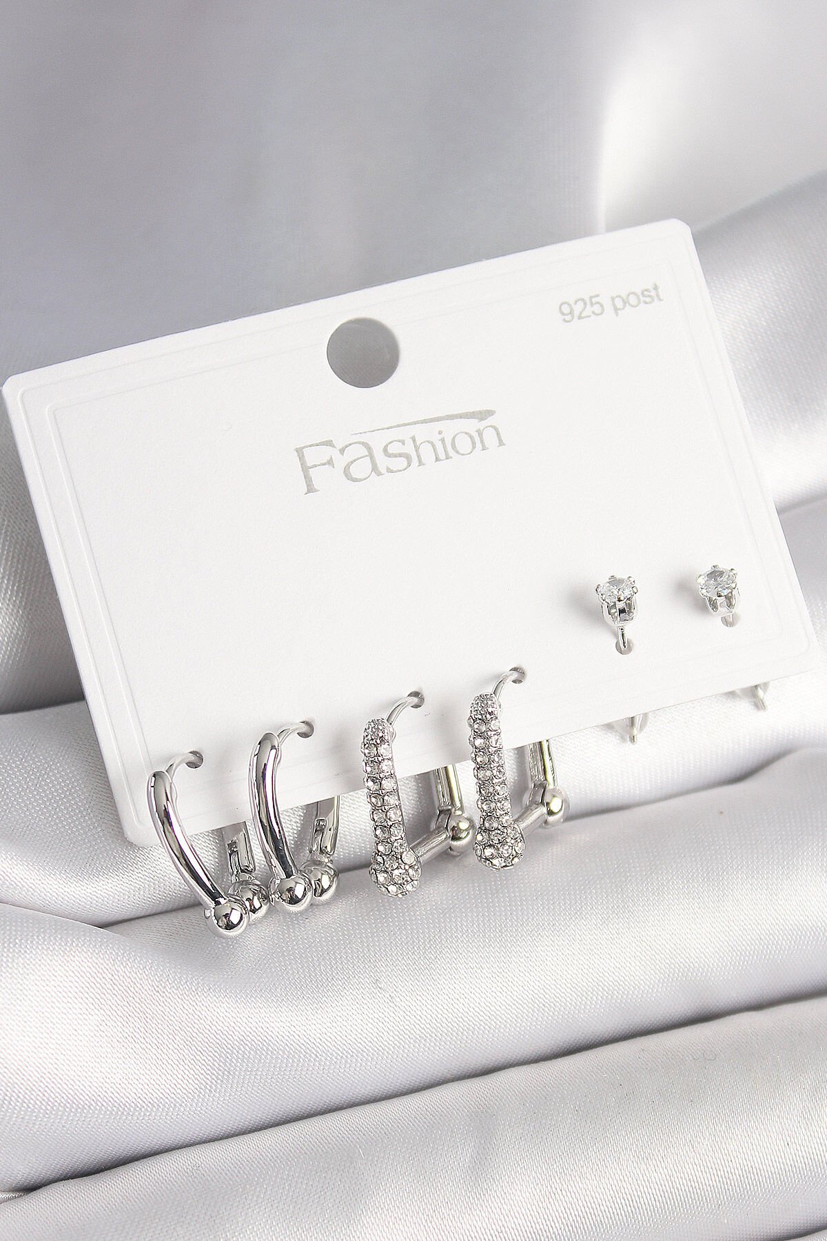 925 Ayar Gümüş Çivi Pirinç Gümüş Renk Zirkon Taşlı Tiffany Halka Model Kadın Küpe Seti