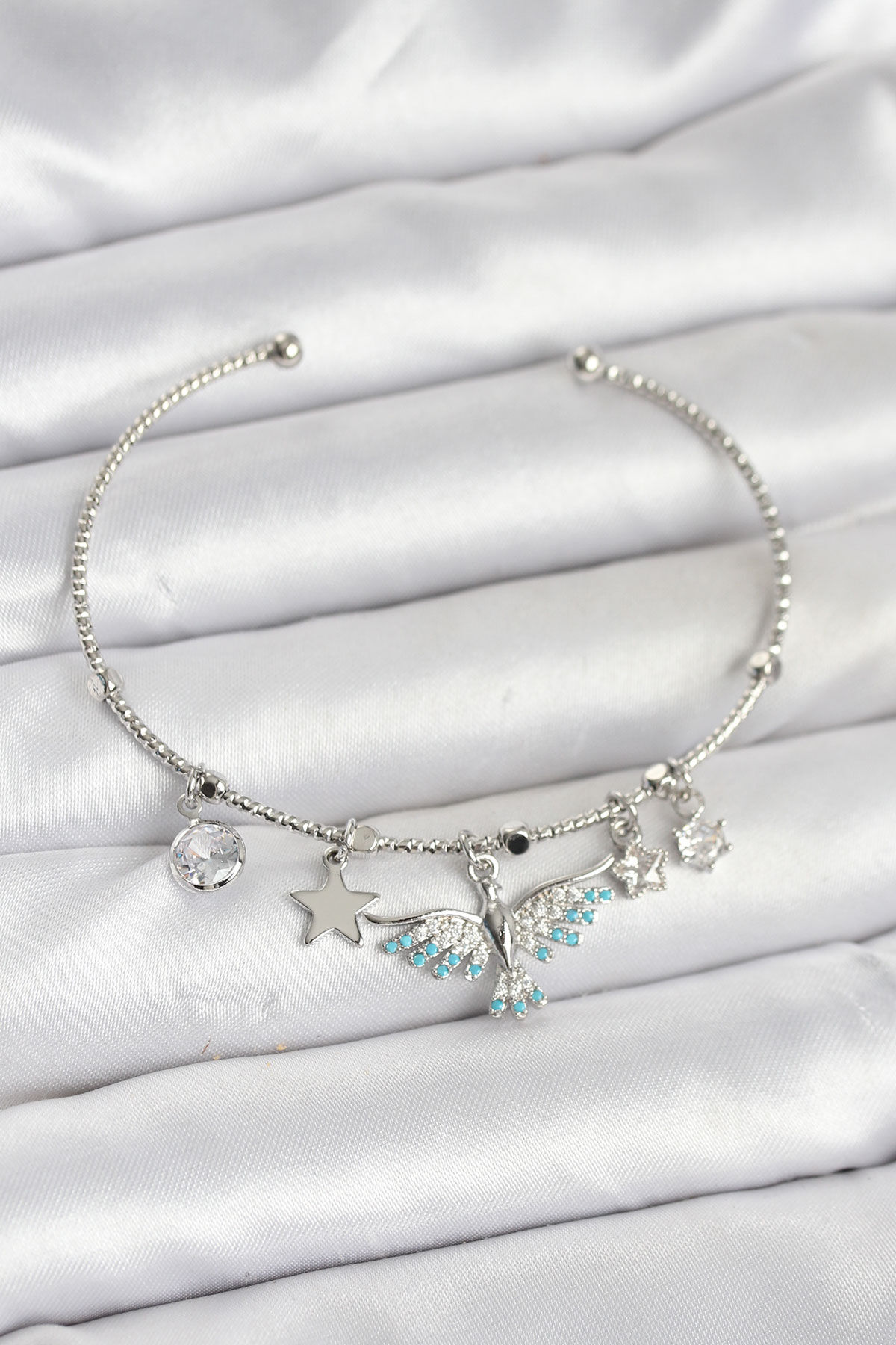 Anka Kuşu Charmlı Gümüş Renk Pirinç Kadın Bileklik
