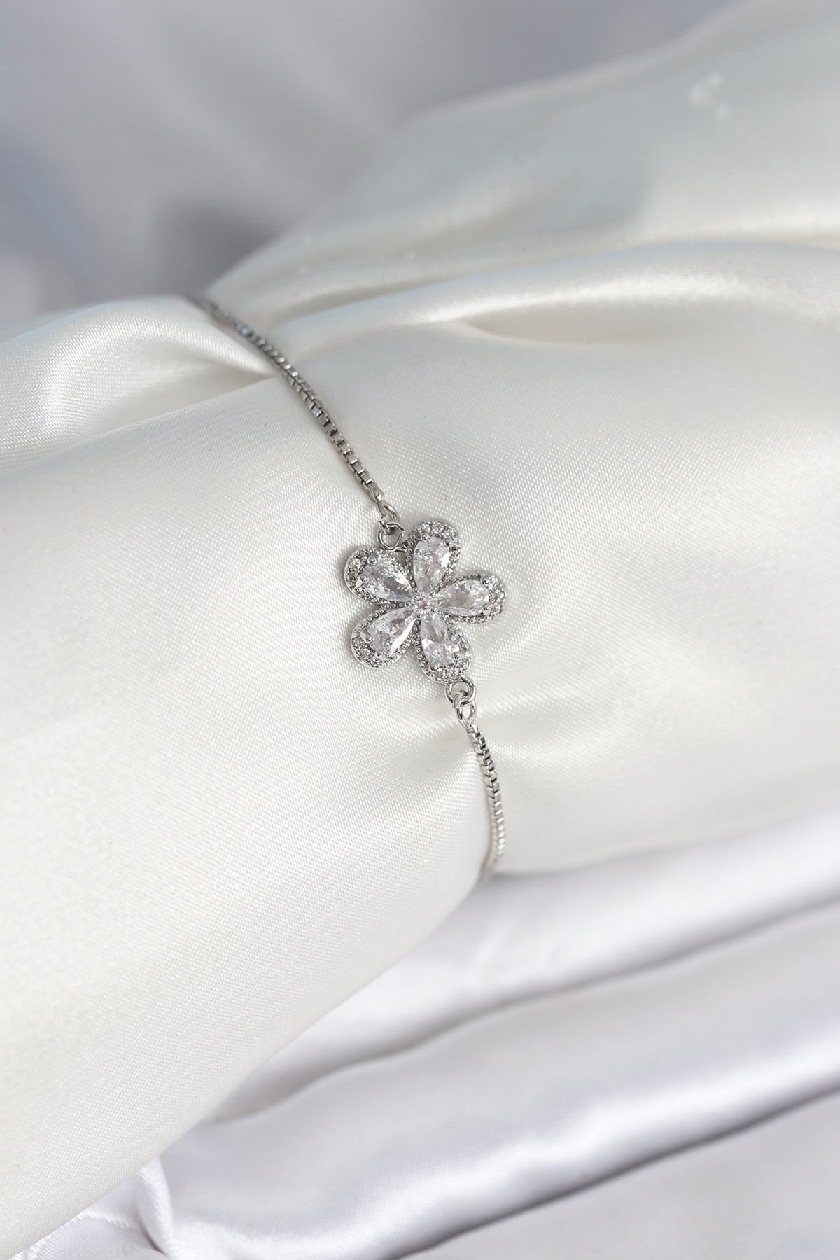 Çiçek Model Asansörlü Gümüş Renk Kadın Bileklik e_BB8012