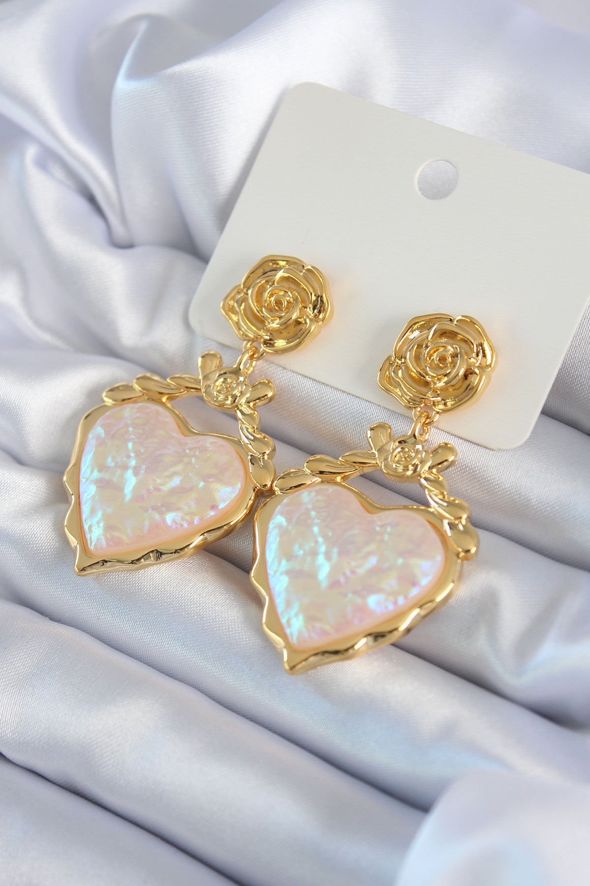 Gold Renk Gül Sallantı Kalp Model Pirinç VİP Kadın Küpe