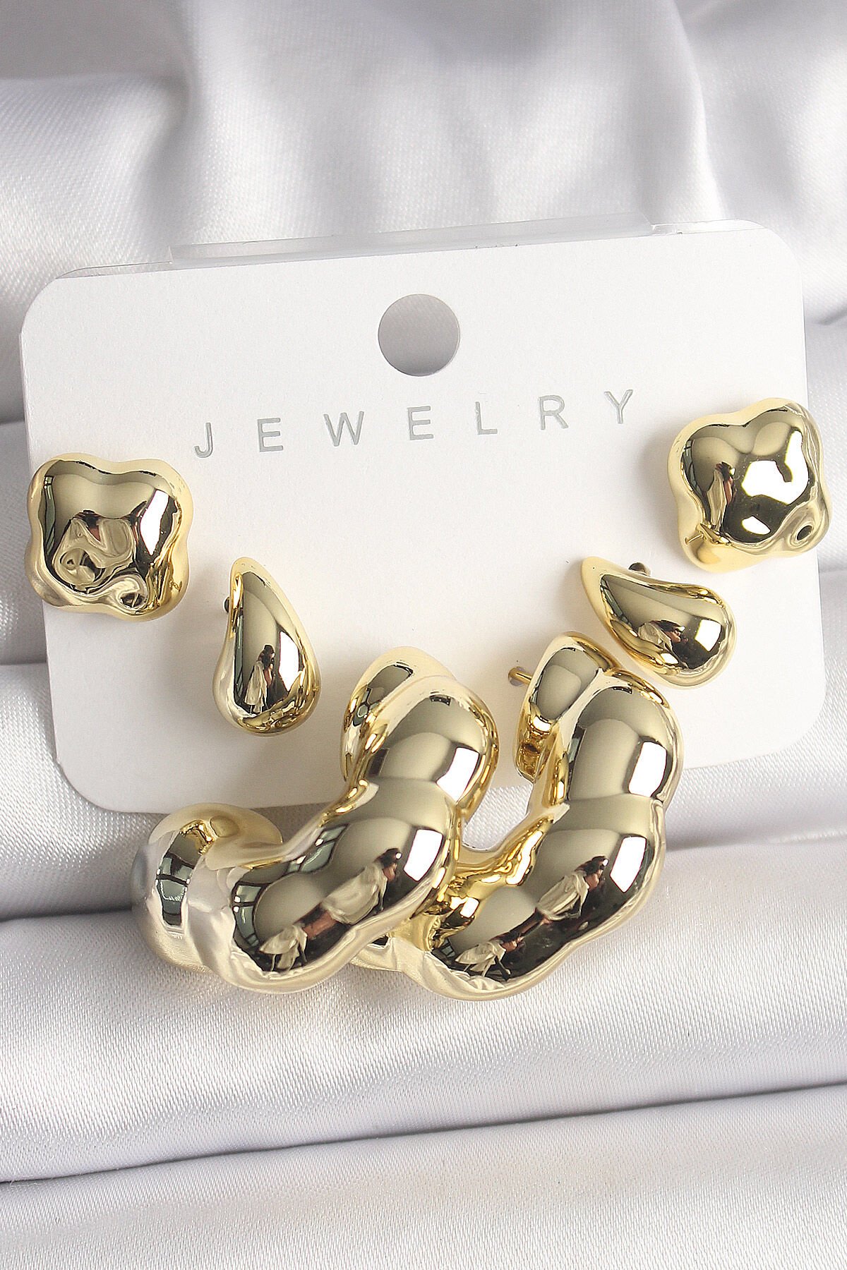 Gold Renk Yonca Damla Halka Model CCB Plastik Kadın Küpe Seti e_BKP10028