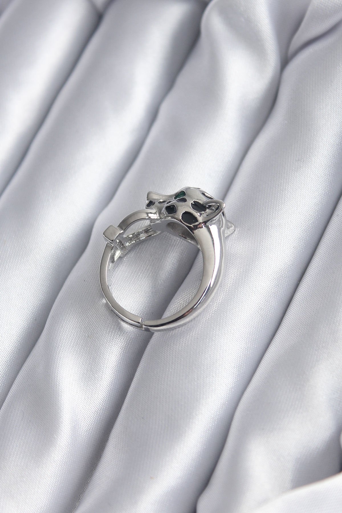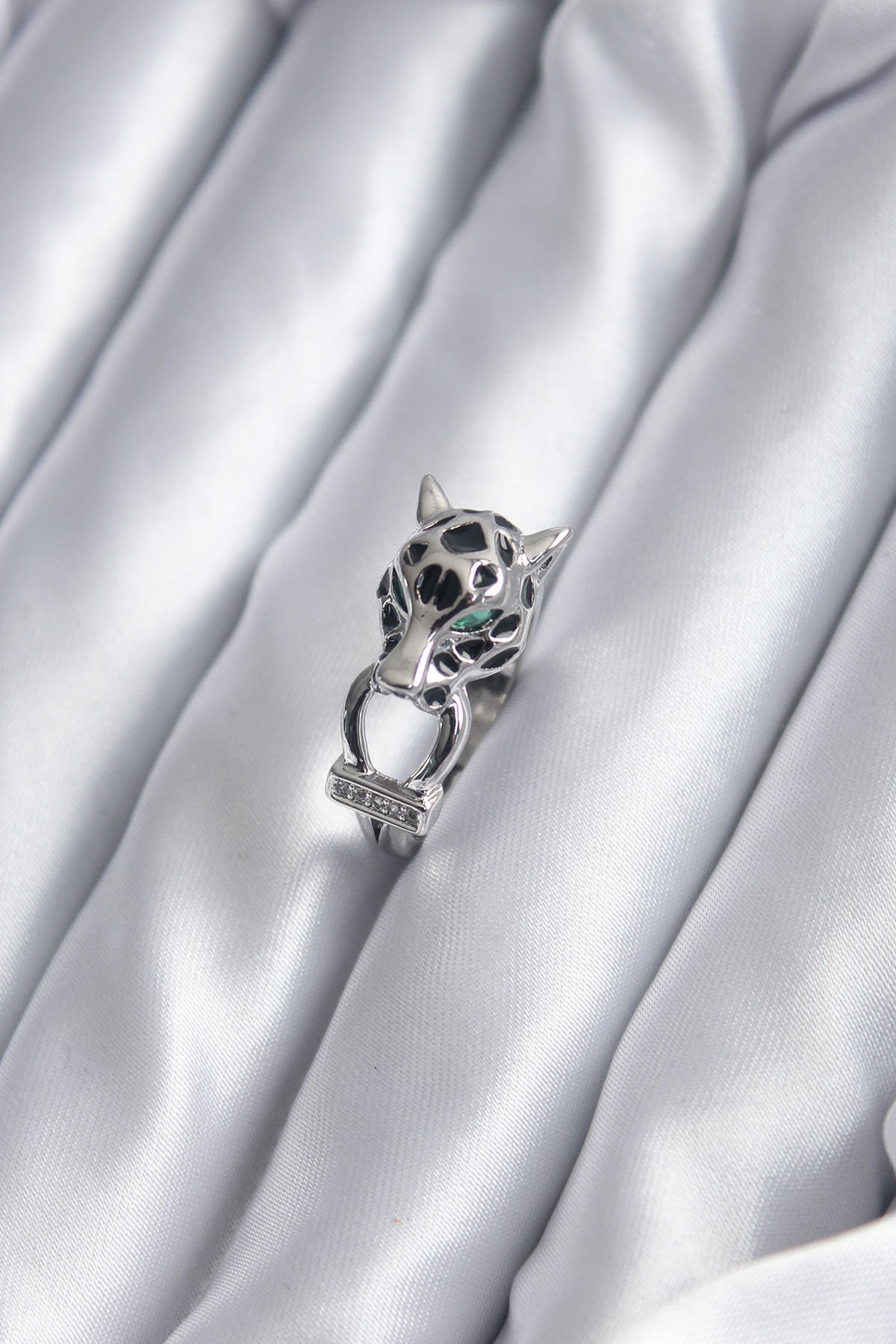 Gümüş Renk Kaplan Model Zirkon Taş Detay VİP Kadın Yüzük e_BYK2854