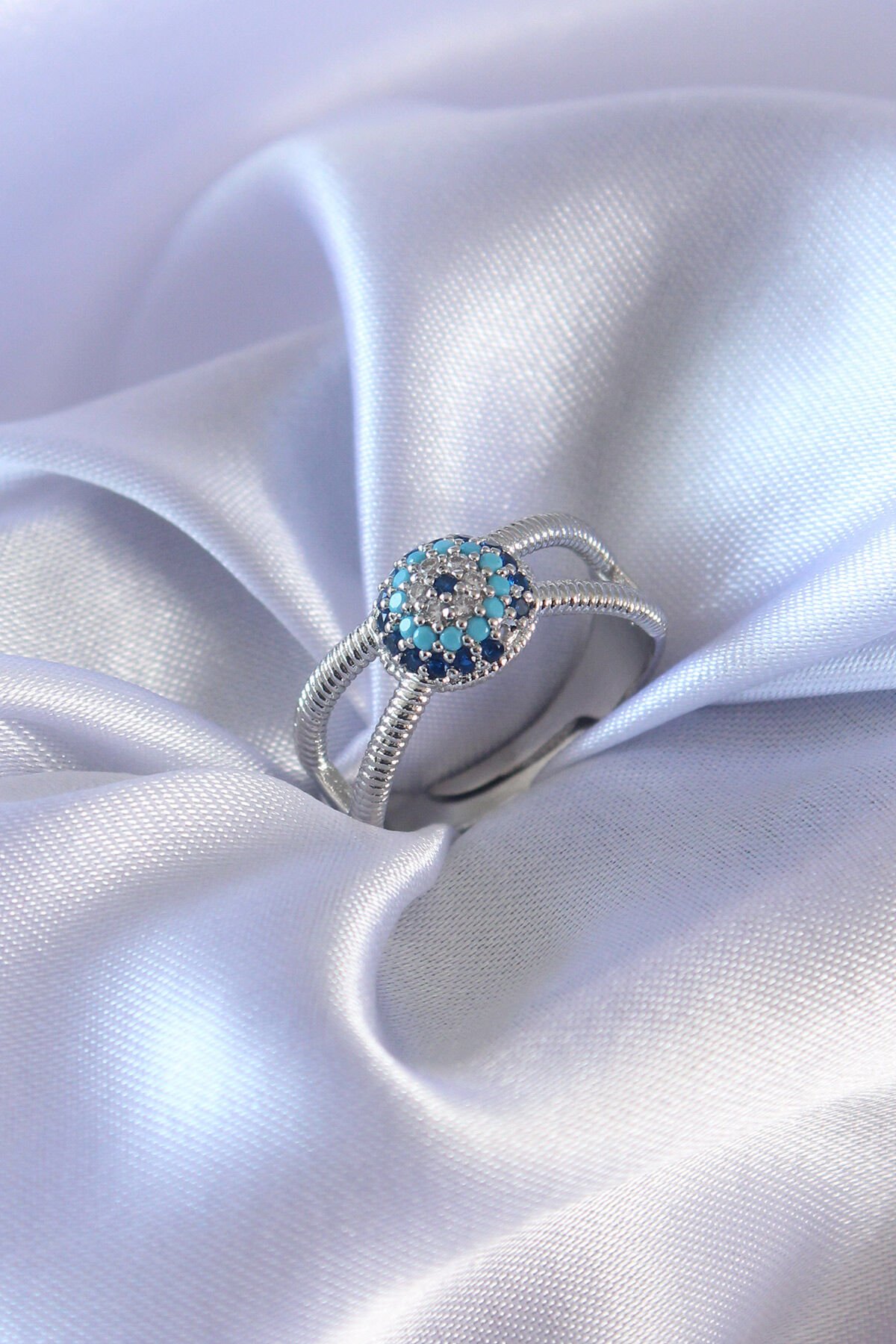 Gümüş Renk Nazar Boncuk Model Kadın Yüzük