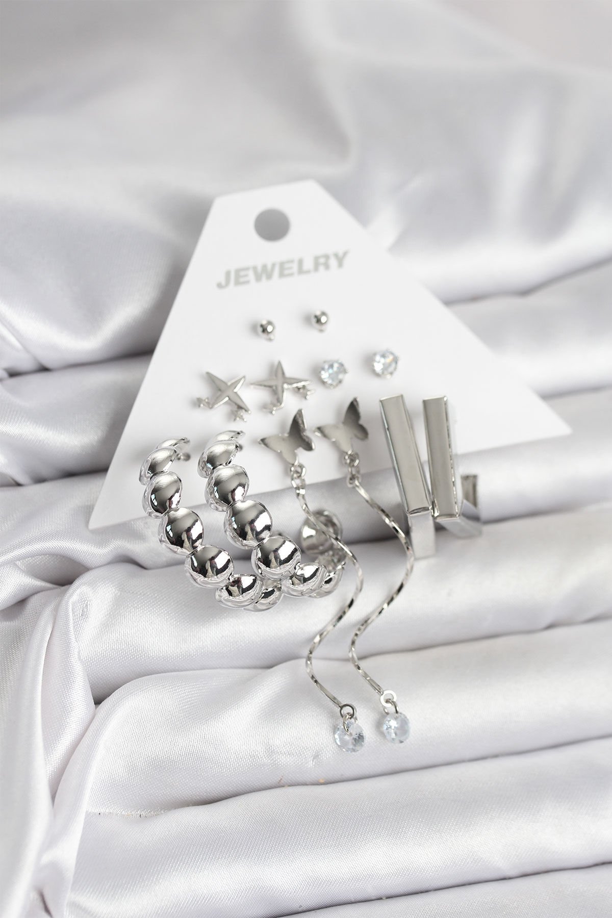 Gümüş Renk Pirinç 6'lı Kadın Küpe Seti e_BKP11330