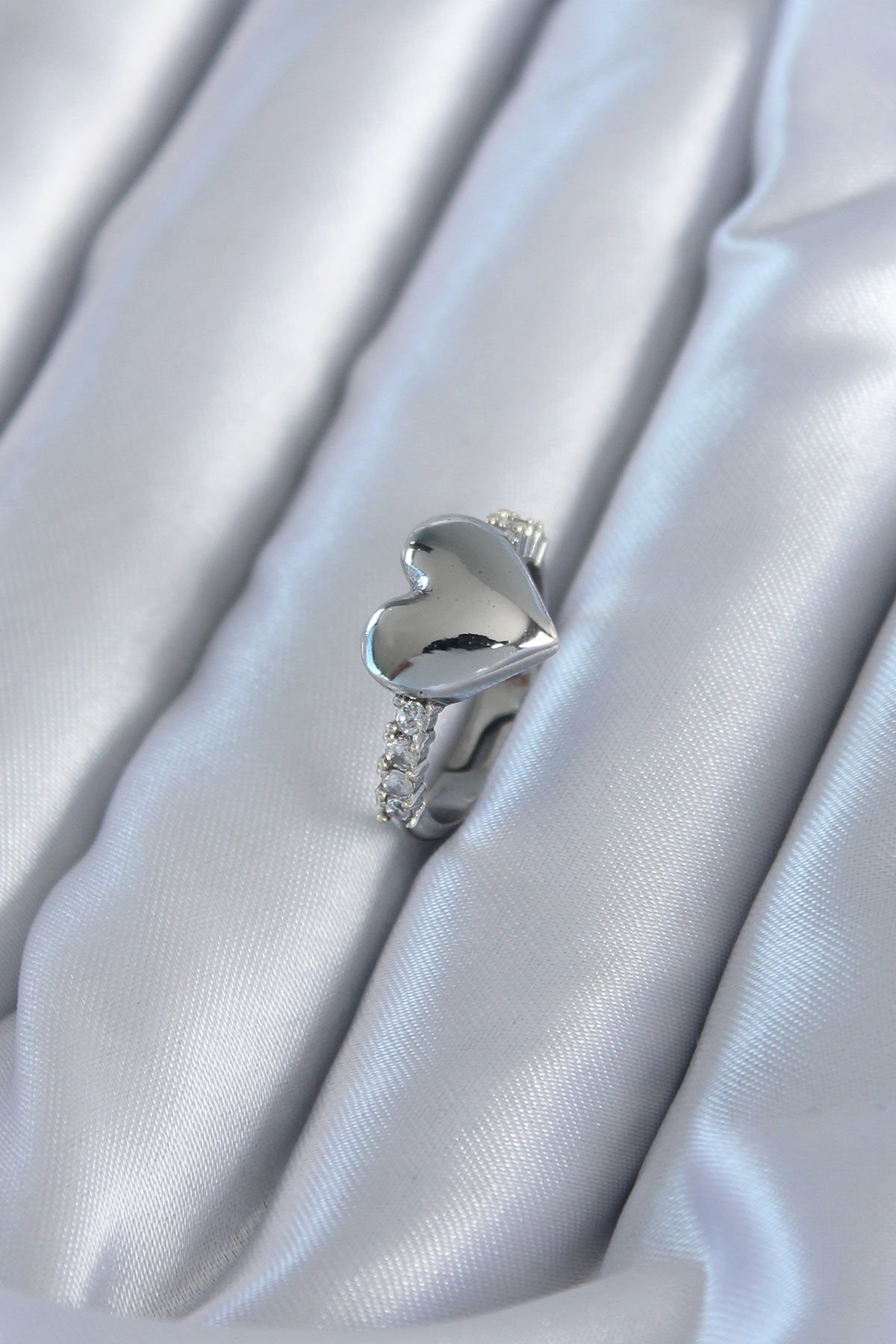 Gümüş Renk Pirinç Zirkon Taşlı Kalp Model Kadın Yüzük e_BYK2820