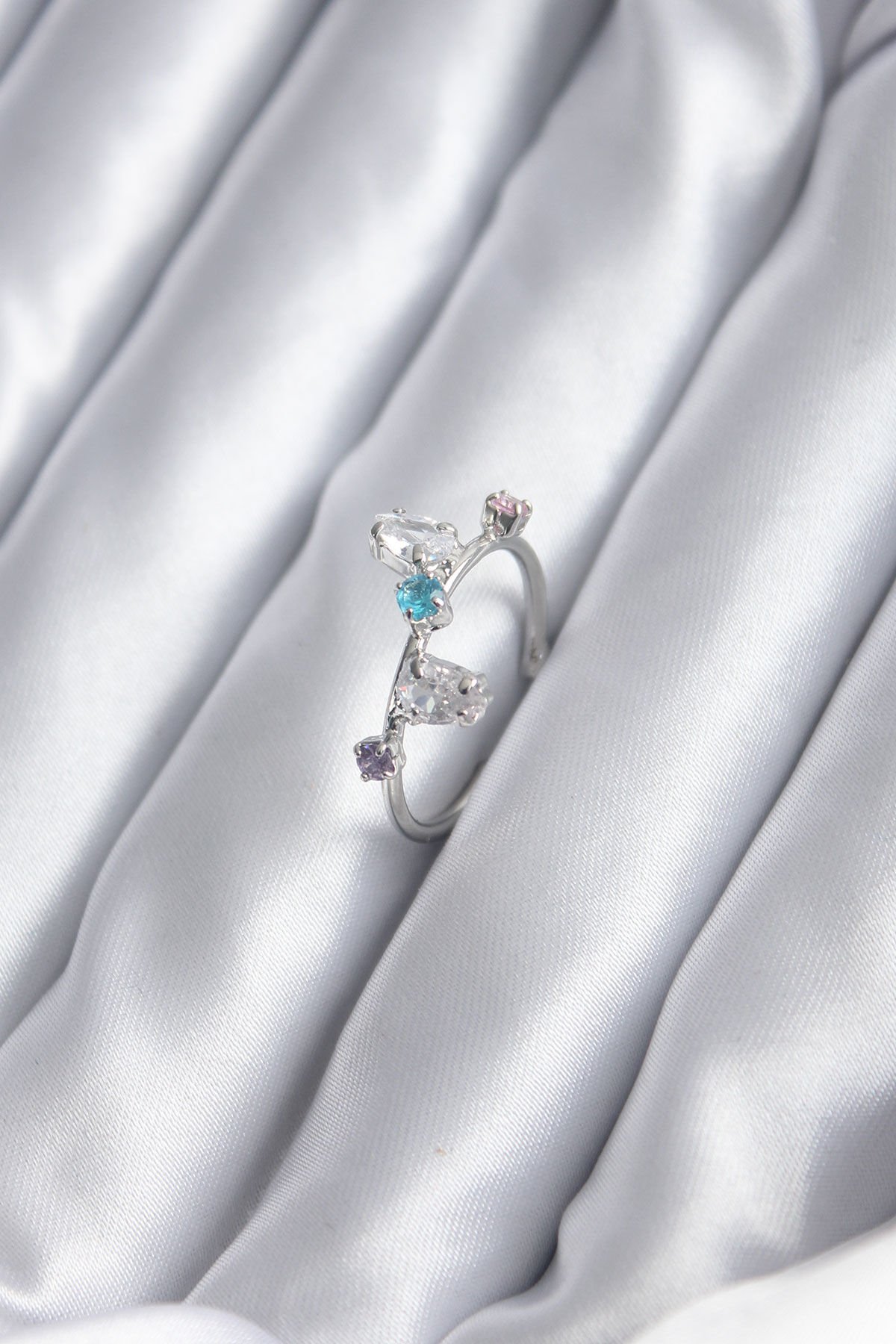 Gümüş Renk Renkli Zirkon Taşlı Kadın Yüzük