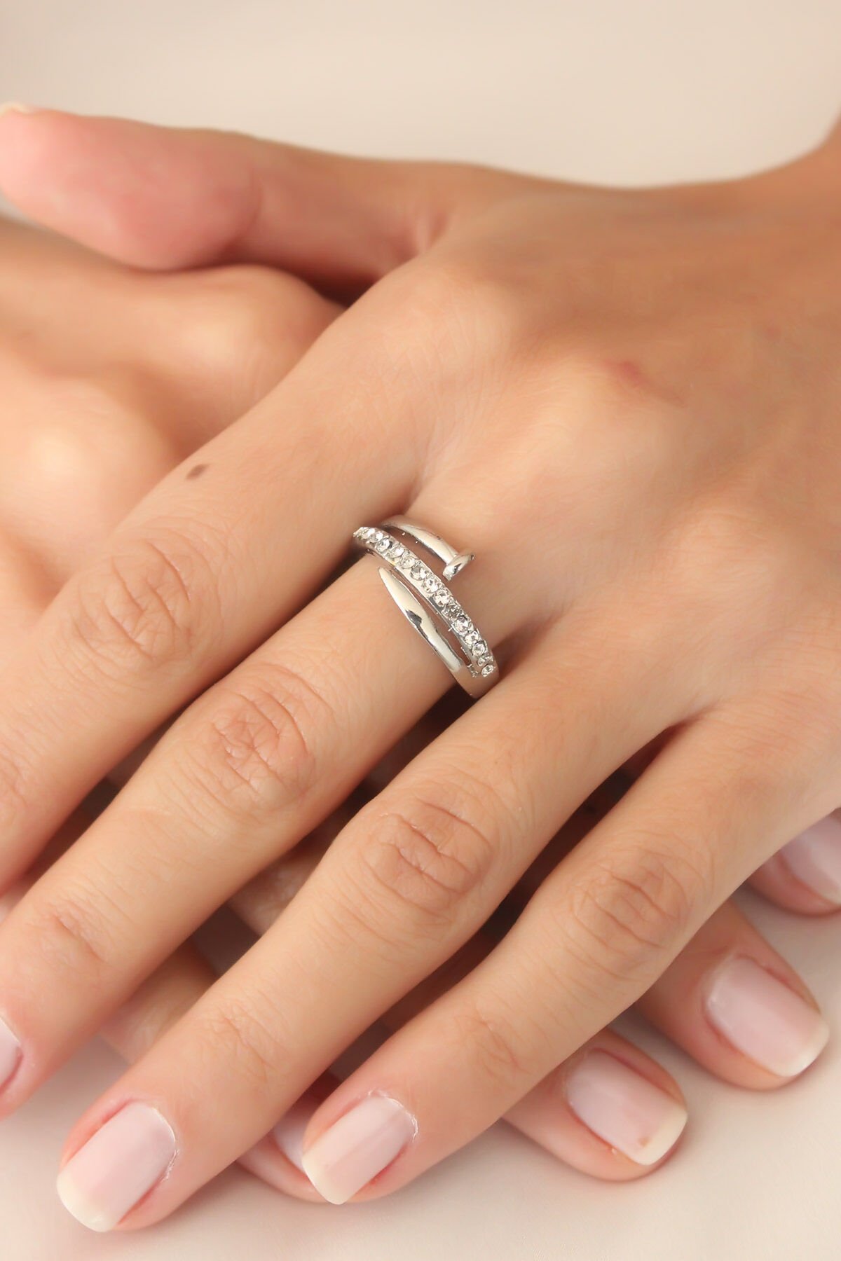 Gümüş Renk Taşlı Çivi Ayarlanabilir Kadın Yüzük e_BYK2407
