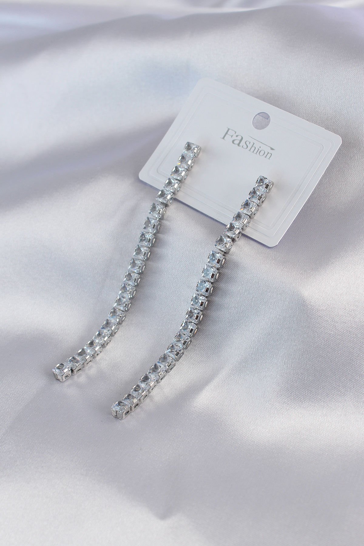 Gümüş Renk Zirkon Taşlı Kadın Küpe e_BKP7465