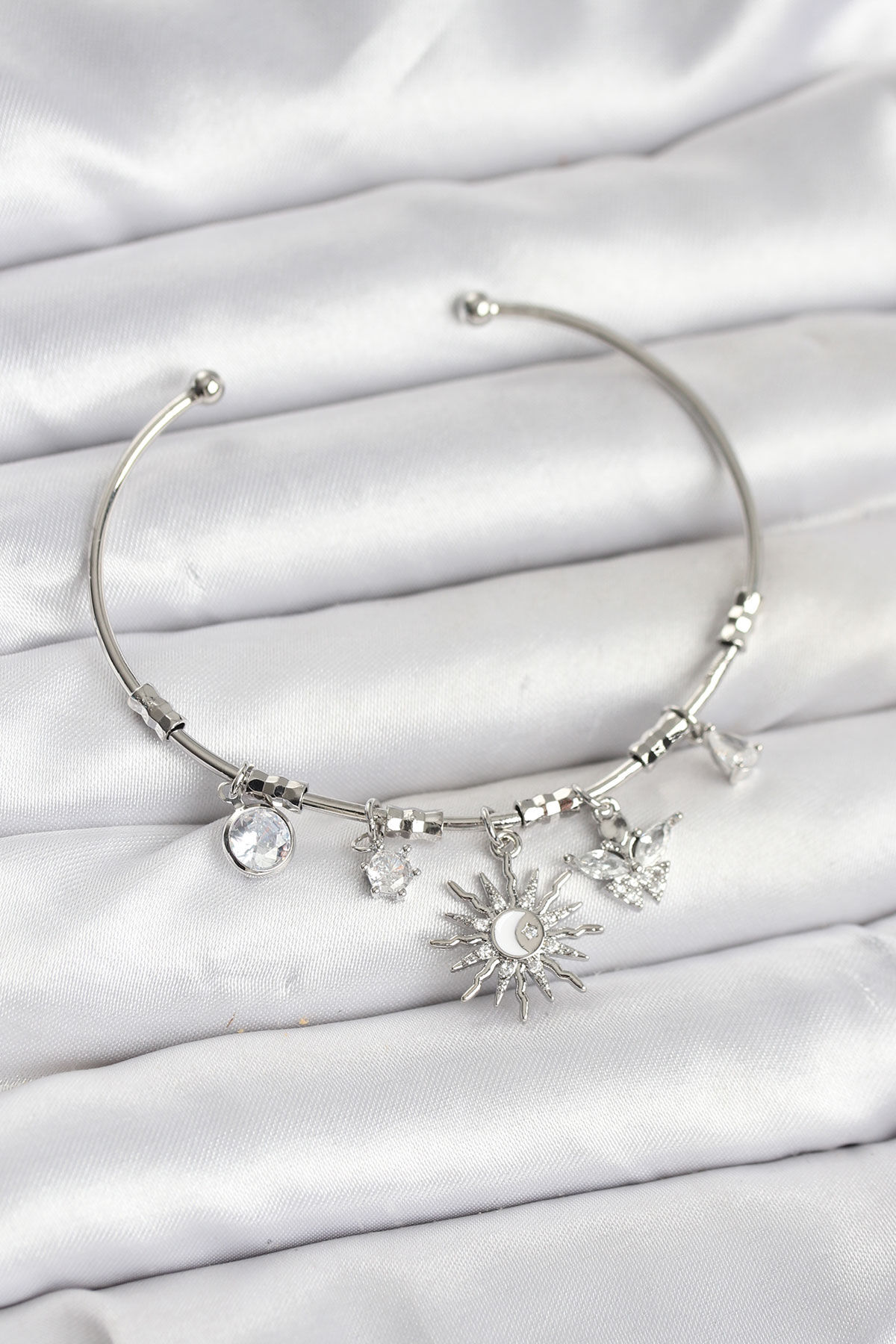 Güneş Charmlı Gümüş Renk Pirinç Kadın Bileklik e_BB8042