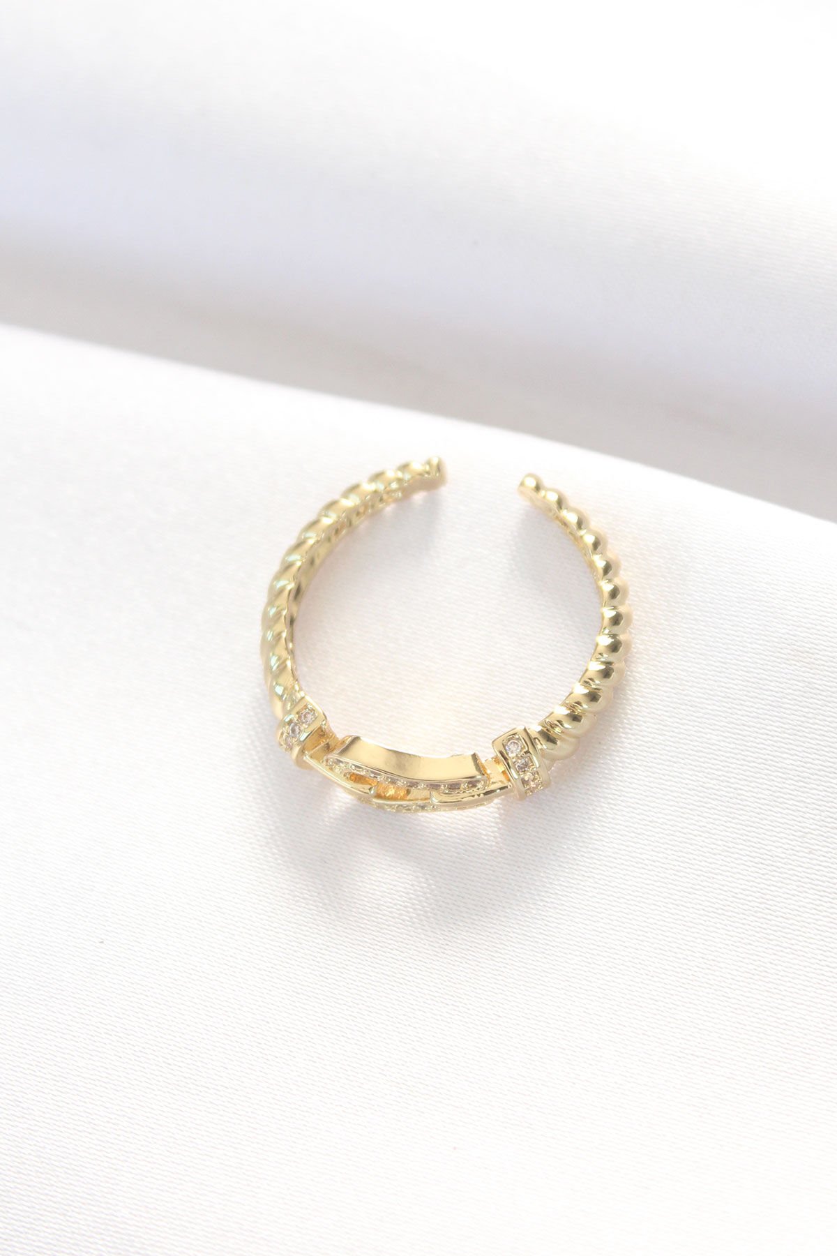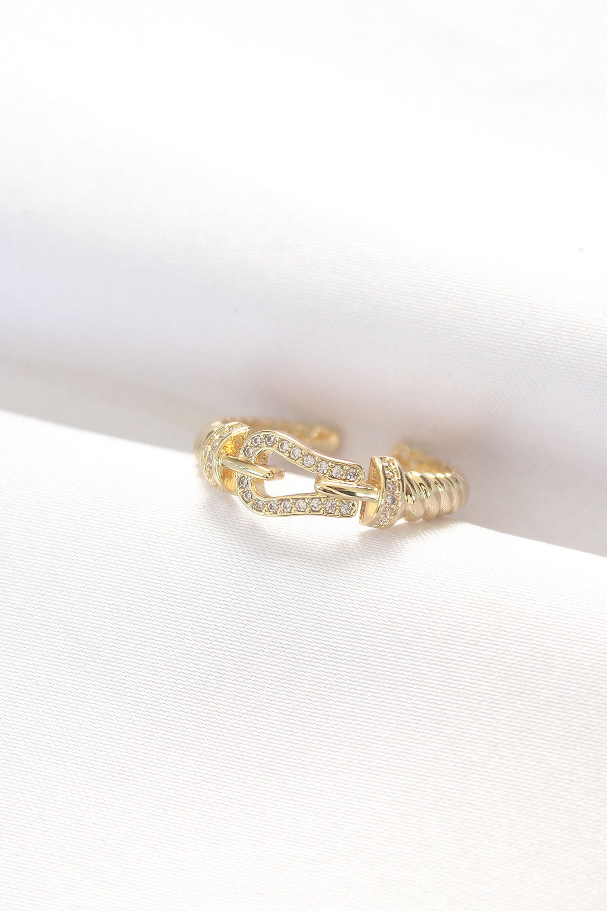 Kemer Tokası Tasarımlı Gold Renk Zirkon Taşlı Ayarlanabilir Yüzük
