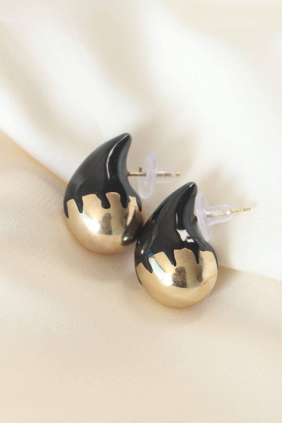 Minimal Siyah Mineli Çift Renk Damla Küpe e_BKP8868