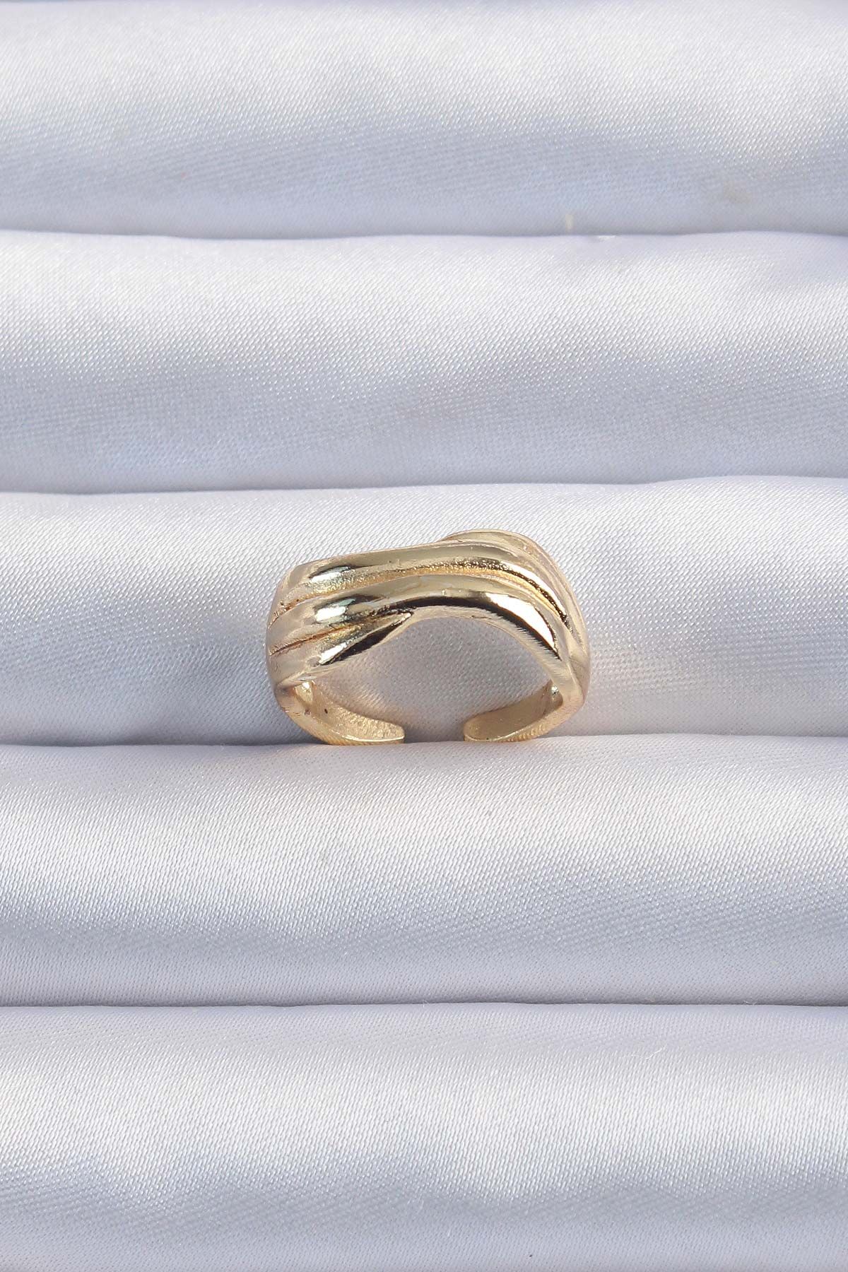 Pirinç Altın Renk Kıvrımlı Ayarlanabilir Yüzük e_BYK3291