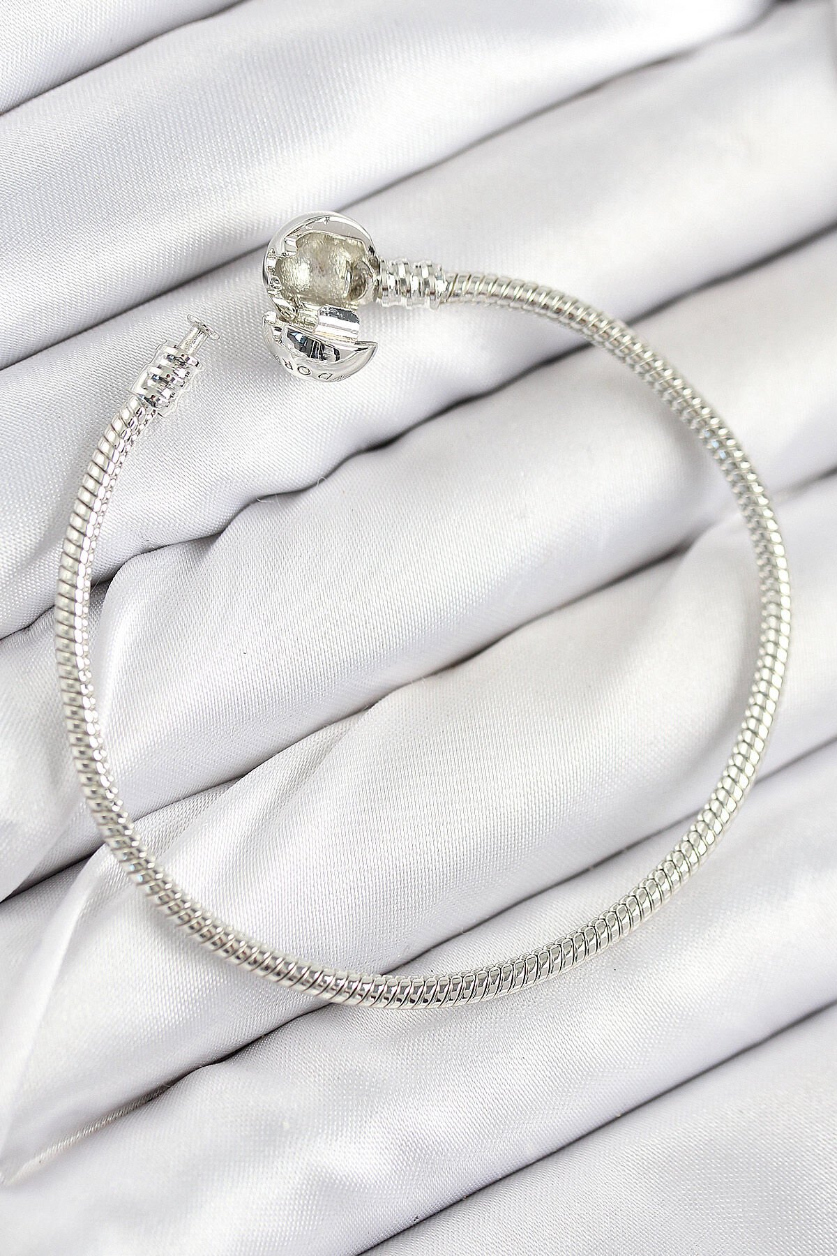 Pirinç Charm Topcuk Model Gümüş Renk Kadın Bileklik e_BB7801